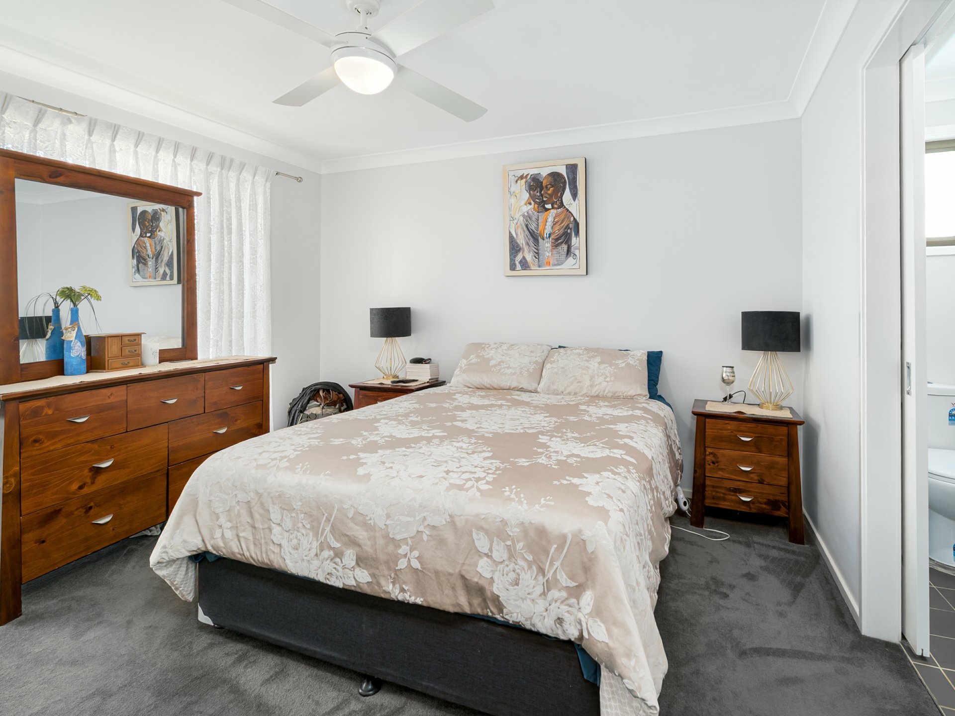 - Four bedrooms, each featuring built-in wardrobes and ceiling fans, with the master bedroom including a private ensuite