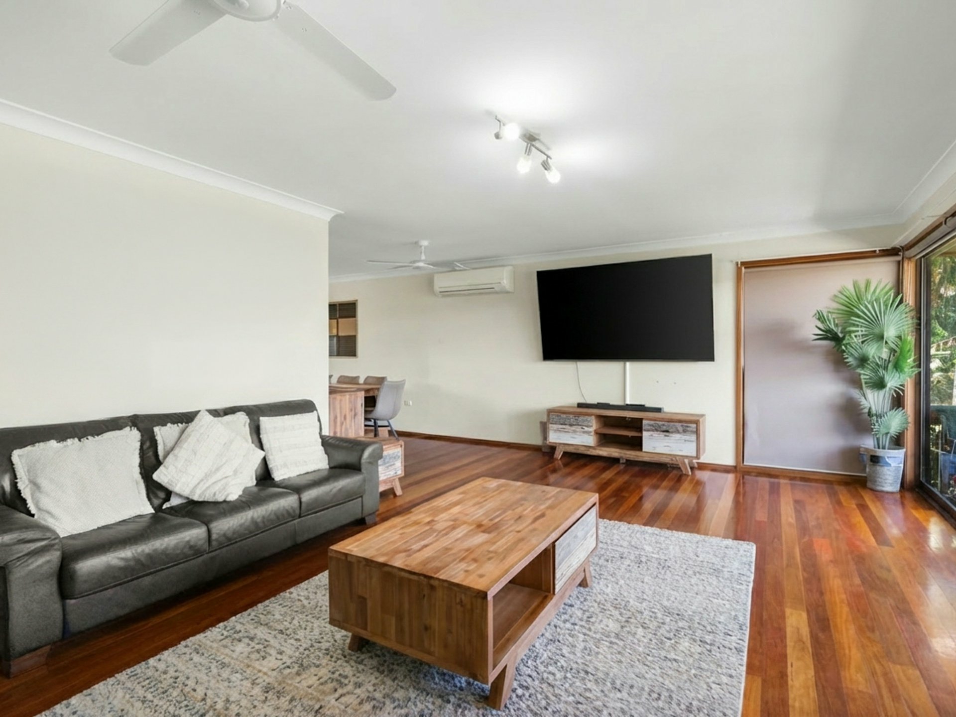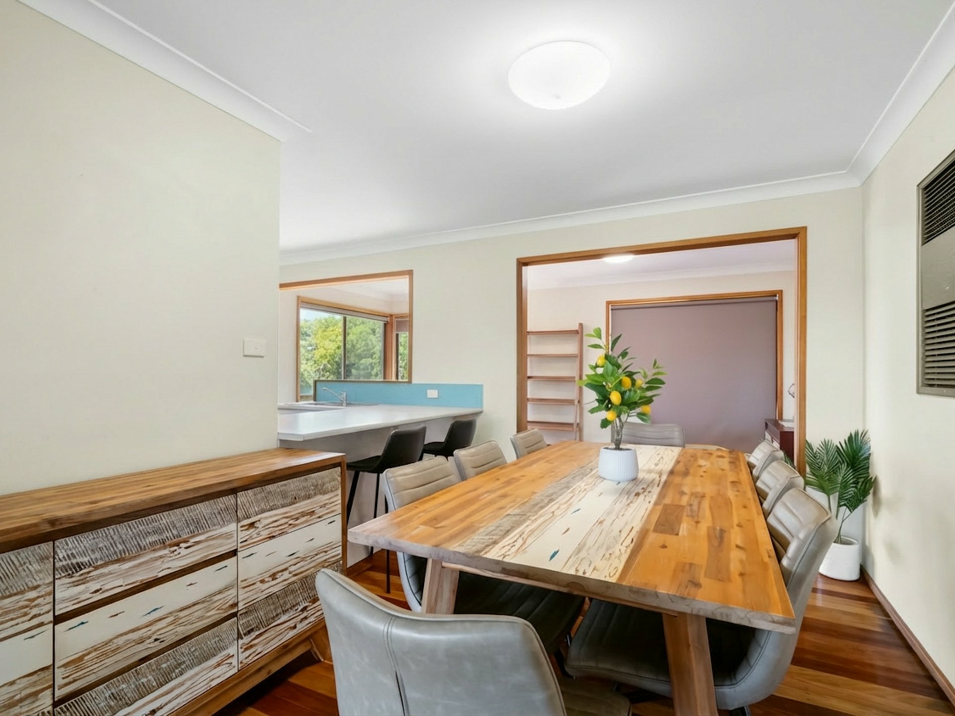 Polished timber flooring adds a practical and inviting touch, making this zone well suited to both everyday living and entertaining.