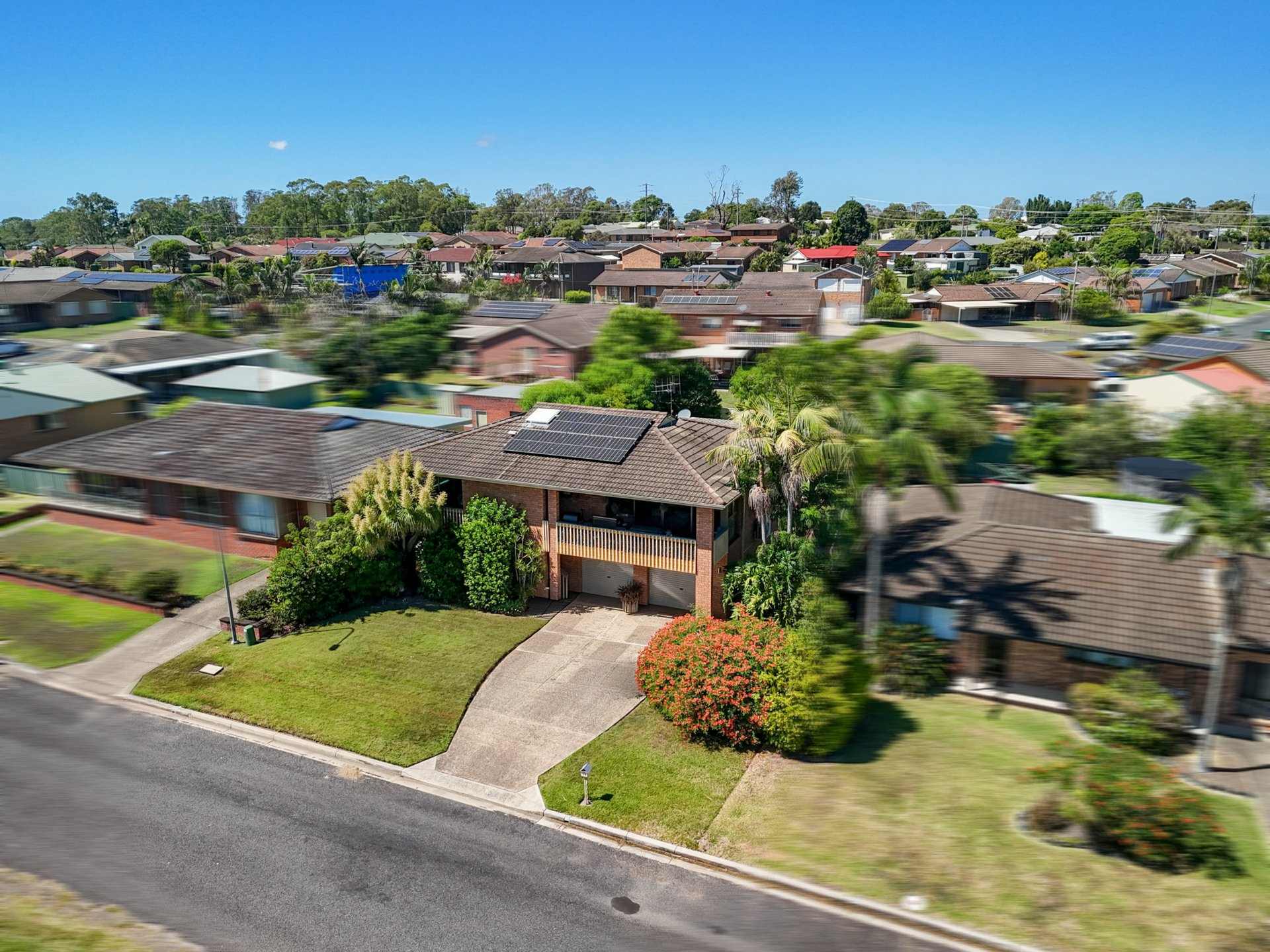 At the front of the home, a covered verandah captures a pleasant outlook across the Taree Racecourse, creating a nice spot to sit and enjoy the surroundings. Additional features include solar panels and a double lock-up garage with a storage room, bar area and plenty of extra space for hobbies.