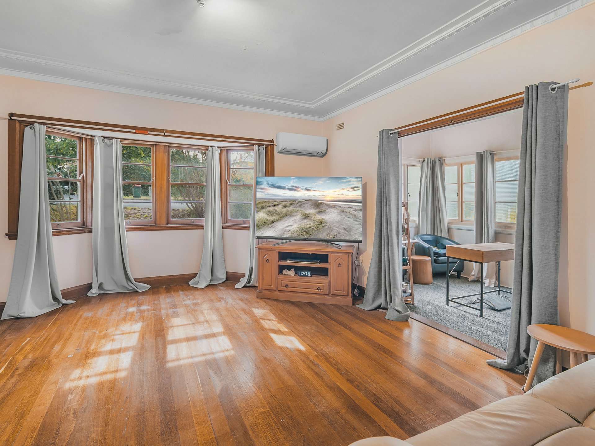 Offering three bedrooms plus a bright north-facing sunroom, the layout is both functional and flexible. The main sunroom opens directly from the spacious lounge room, providing an ideal space for reading, relaxing, or even working from home. A second, smaller sunroom is located at the rear of the house and leads out to the backyard, alongside an internal laundry with a separate toilet. The main bathroom is practical and neatly presented.