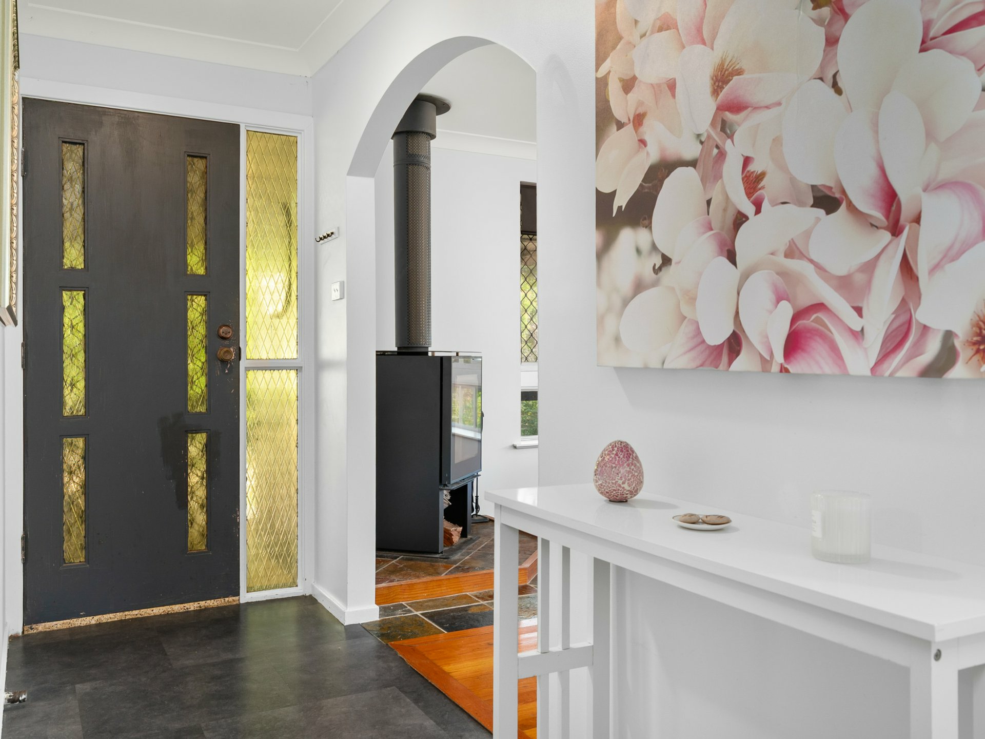 Step inside to a welcoming living room on entry, complete with charming fireplace and timber floorboards that add warmth and character. Flowing through to the heart of the home, the light-filled kitchen and dining area opens onto a covered balcony, where you can take in views over the private backyard and sparkling inground pool.