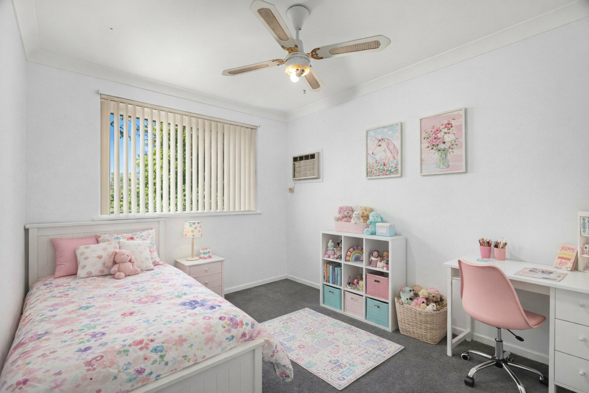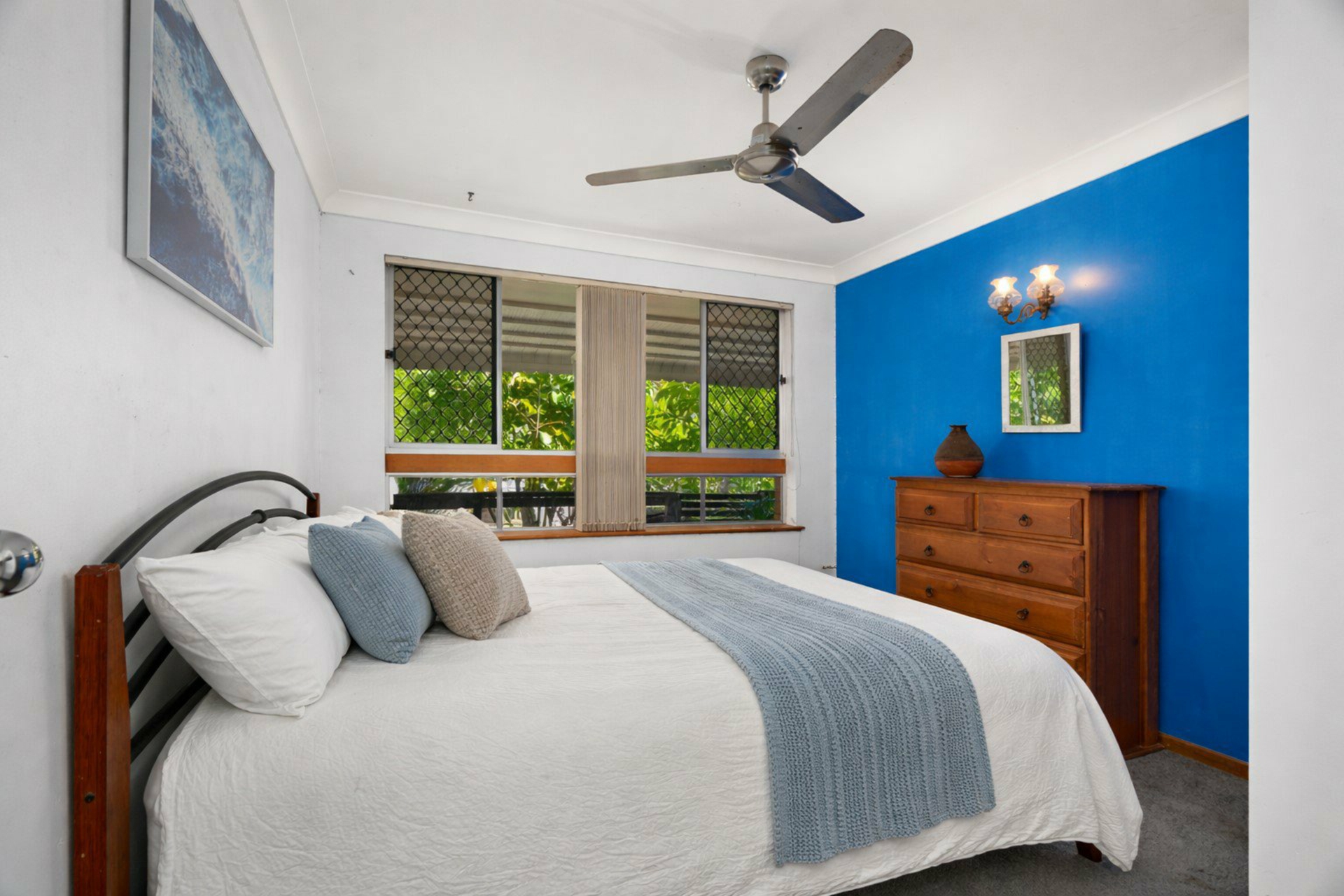 - Three bedrooms with built-in wardrobes and ceiling fans. Air conditioning in two bedrooms