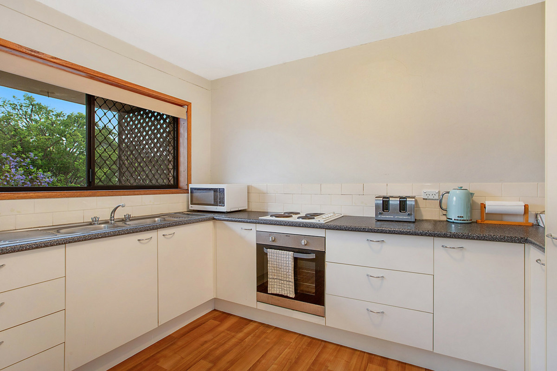 Great updated kitchen with loads of bench space and electric cooking and green leafy views from the second floor balcony combine to create a homely feel for the lucky tenants.