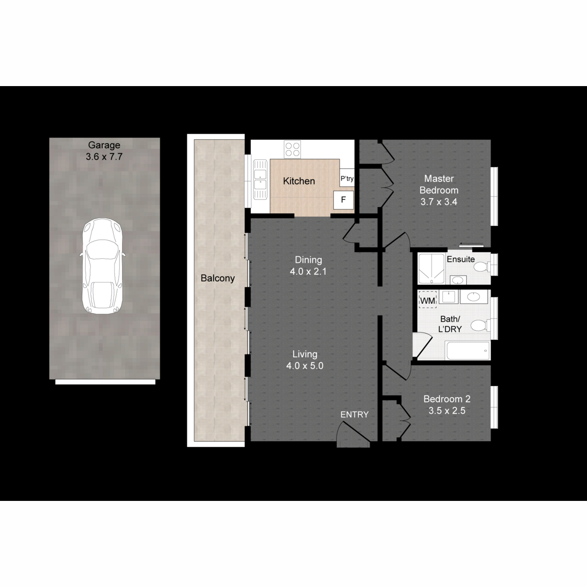 Spacious and more than comfortable the unit boasts a generous lounge, king size master bedroom and ensuite. Bedroom 2 will easily accommodate a Queen size bed and also has robes. The main bathroom/laundry combo is adjacent so tenants sharing can have their own bathrooms.