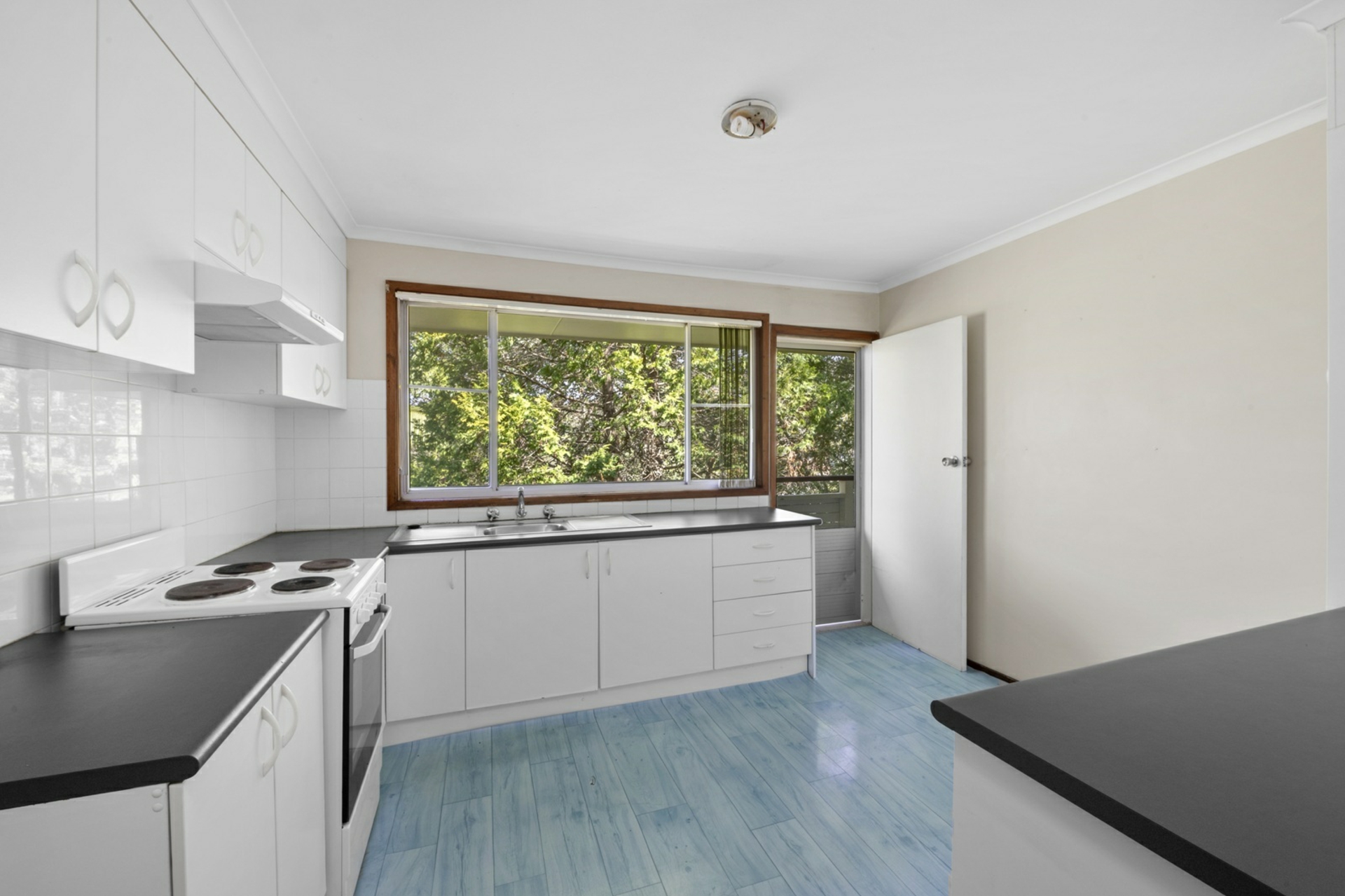 • Kitchen with electric cooker and ample cupboard space