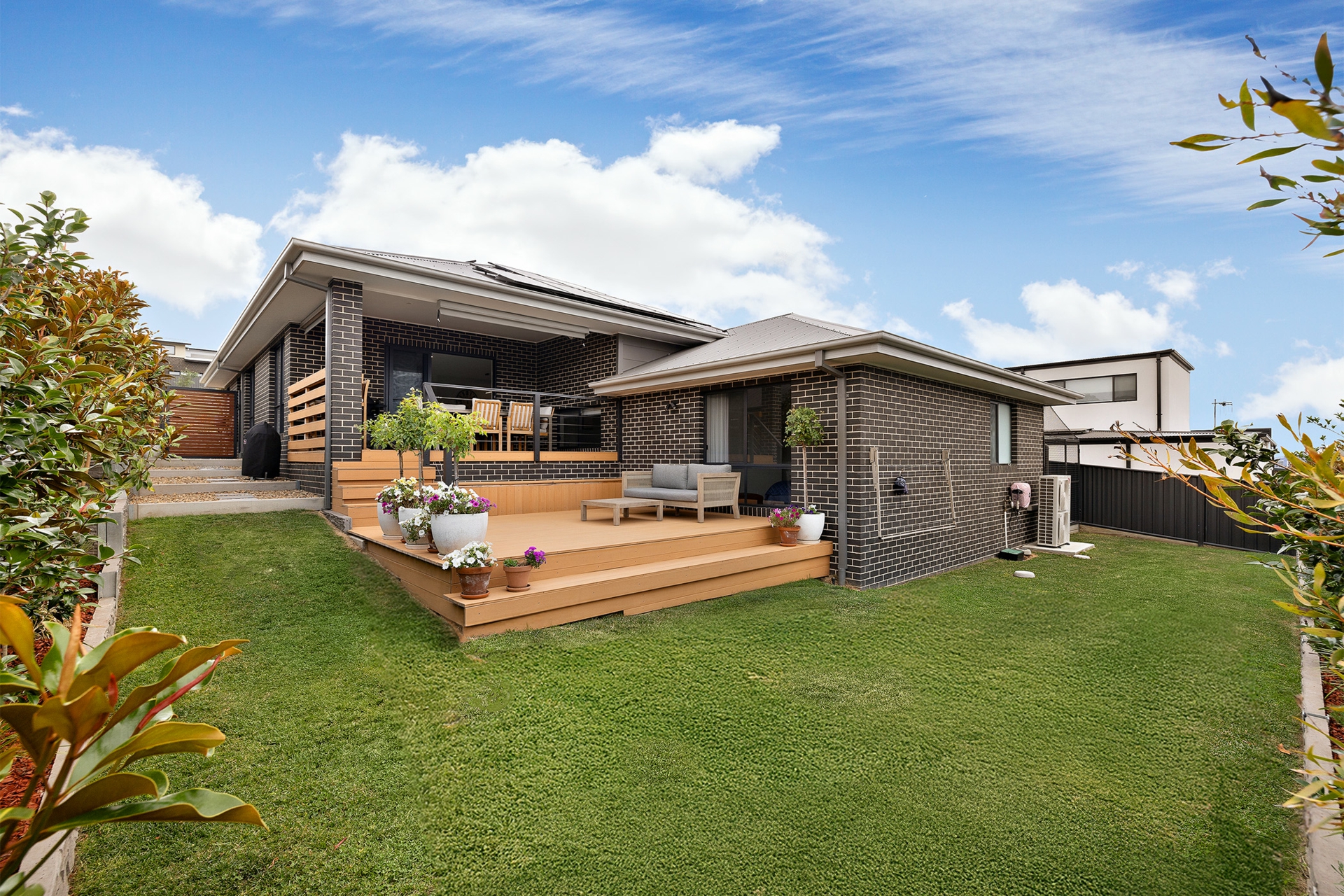 • Private backyard with landscaped gardens and lawns