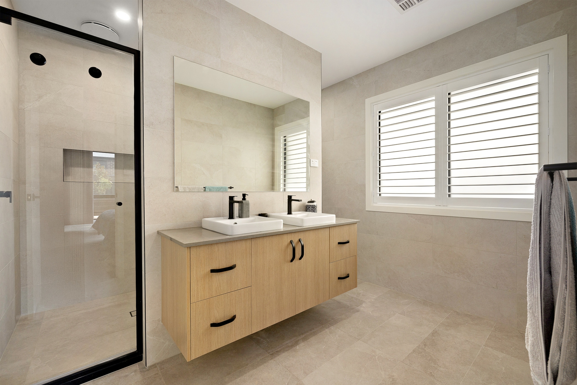 • Master suite appointed with a gorgeous ensuite with double sink vanity, floor to ceiling tiles, plus a large walk-in robe
