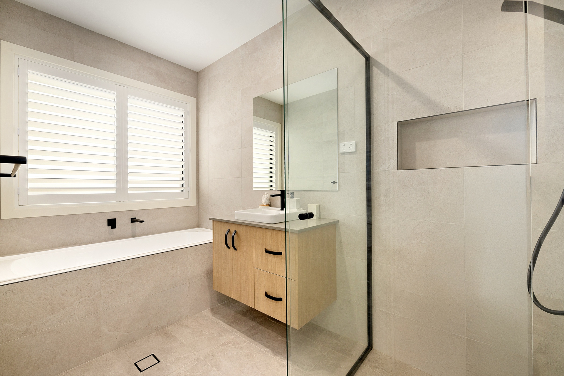 The master suite is appointed with a gorgeous ensuite with double sink vanity, floor to ceiling tiles, and modern hardware plus a large walk in robe, while the other three bedrooms all have built in robes and are serviced by the main bathroom with a bathtub and separate toilet.