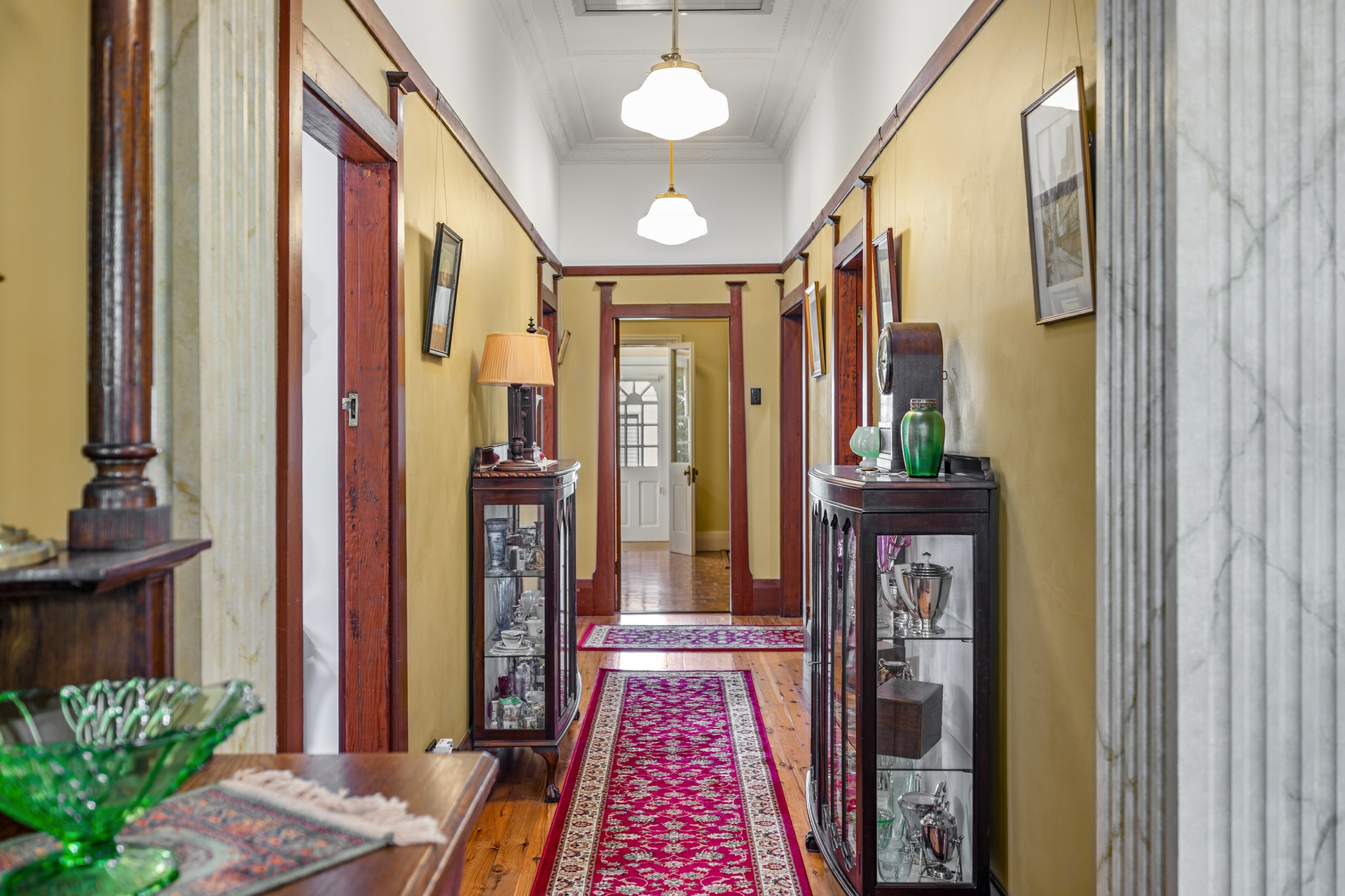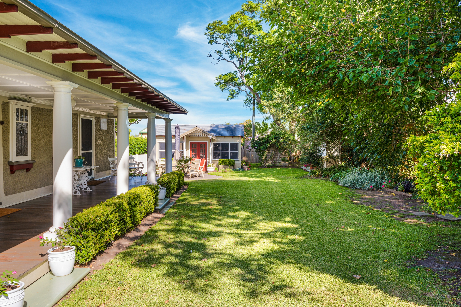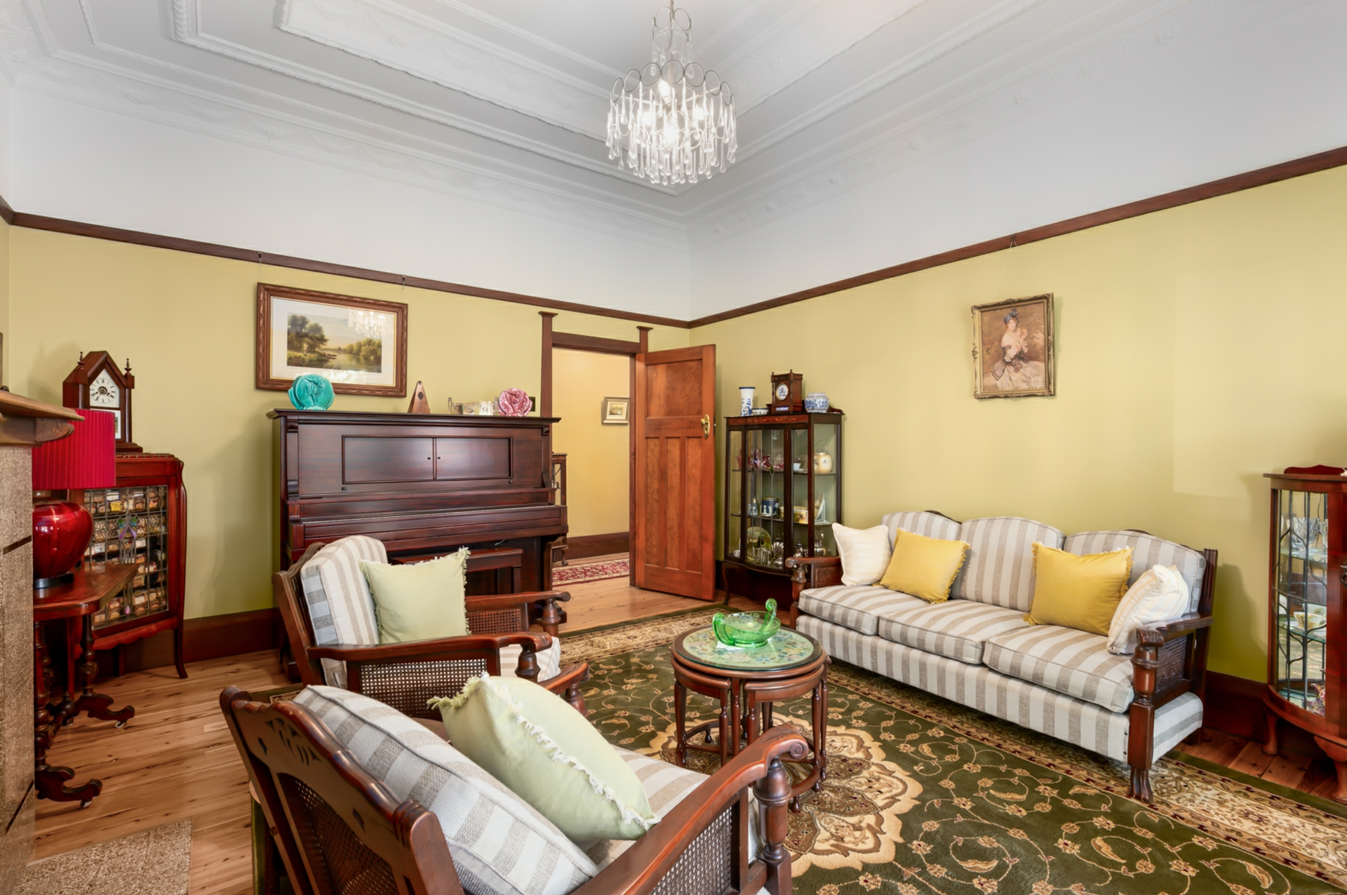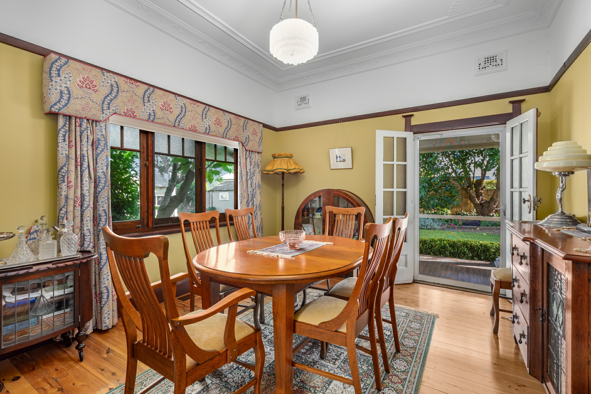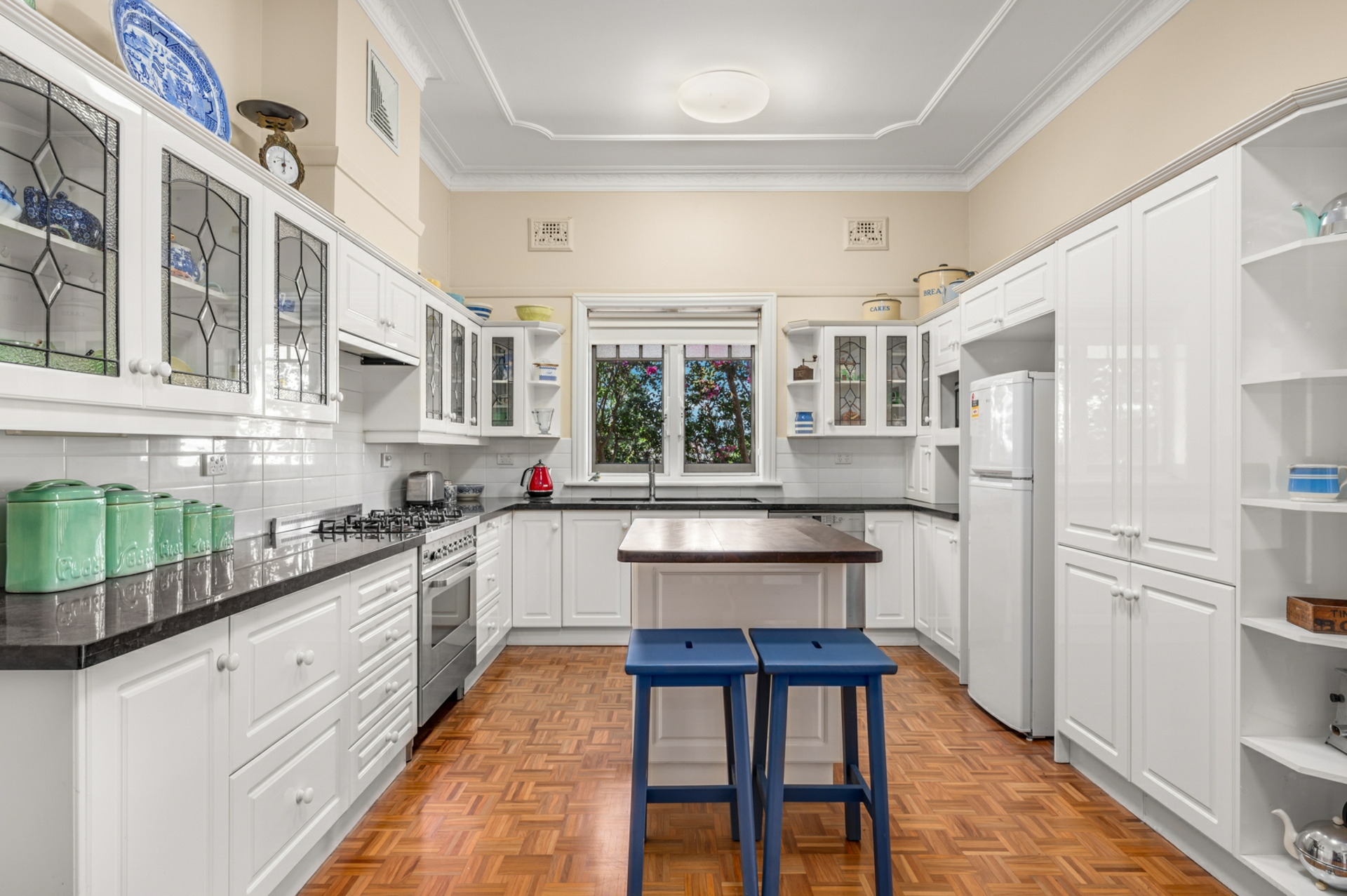 Inside, period features abound, including soaring ornate ceilings, polished timber floors, picture rails, and stunning leadlight windows that frame the home's generous proportions. The thoughtfully designed floorplan offers three well-sized bedrooms within the home, with the master bedroom featuring French door access to the lush backyard & wraparound verandah. The formal lounge exudes grandeur with a coffered ceiling to simply die for. The marble hearth and French doors also open to the side verandah exploding onto the grassy manicured yard and gardens, while each of our front bedrooms also enjoy direct access to the undercover areas.