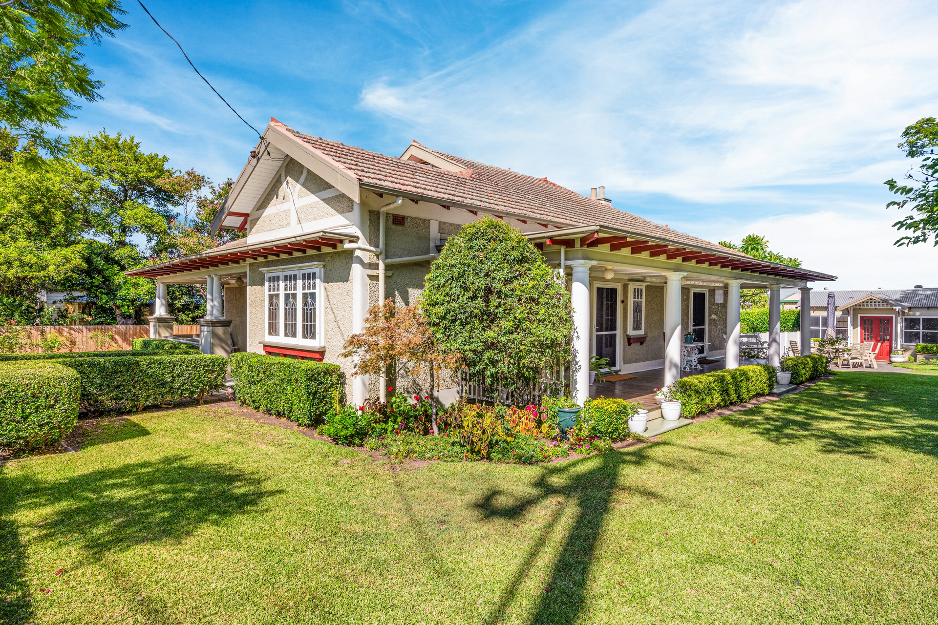 This gorgeous California Bungalow is brimming with timeless elegance, a rare find in the heart of Telarah & one for the purists, those who truly appreciate the craftsmanship & nods of yesteryear. From the moment you arrive, the striking fa�ade, complete with lath stucco construction, a terra cotta tile roof, and decorative fretwork & leadlight adorned windows, sets the scene for a home of exceptional charm and character. A tessellated tiled path leads you through the picket fence to a welcoming deep verandah, shaded and inviting.