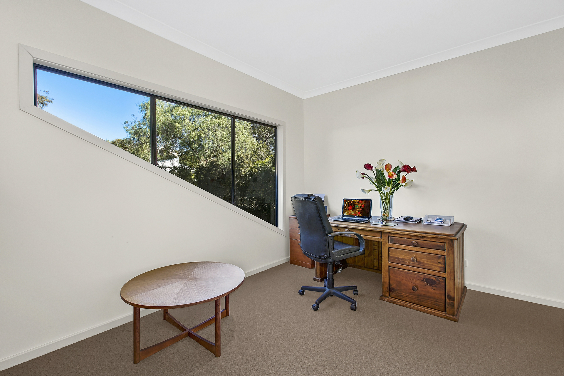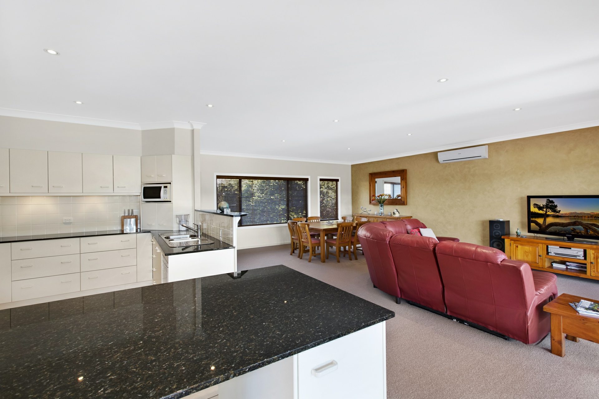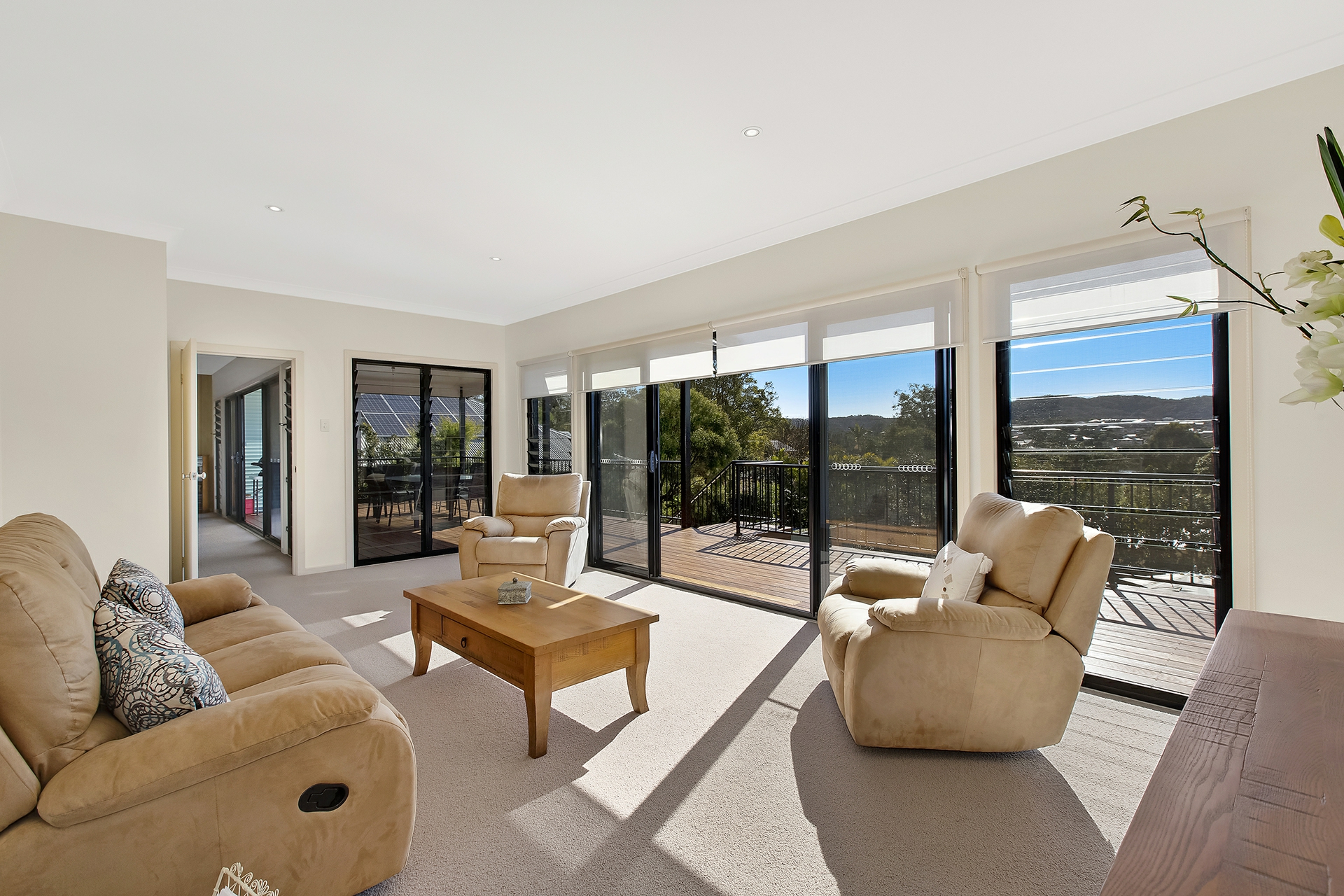 - Open and light filled living domain and study upstairs flowing out to expansive deck with elevated views