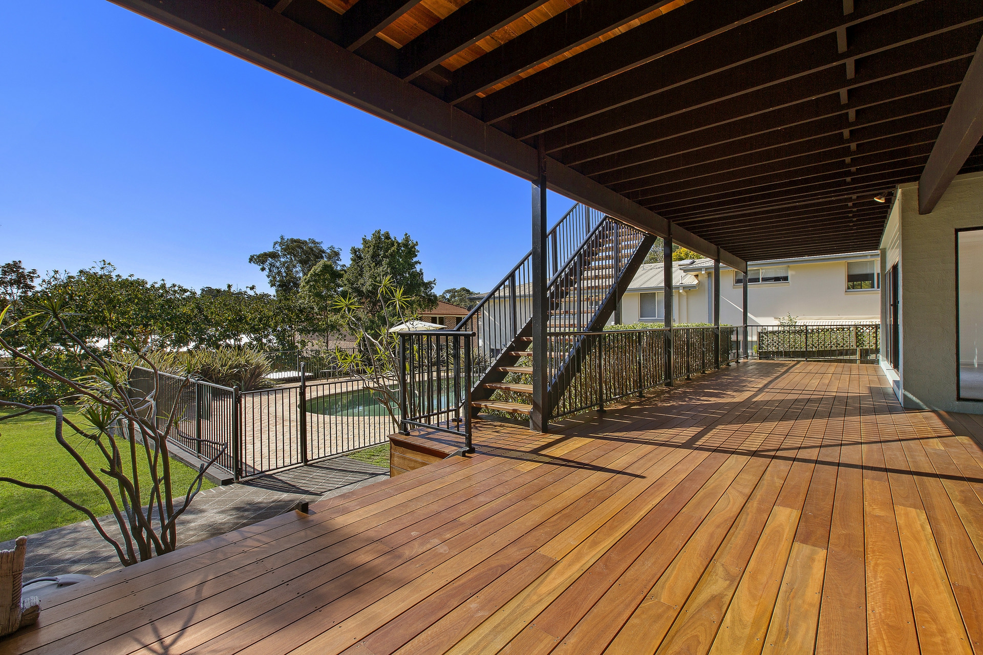 - Additional features include brand new Spotted Gum timber decks on both levels, split system A/C, abundance of under stair and linen storage, louvered windows, internal laundry and beautiful established gardens