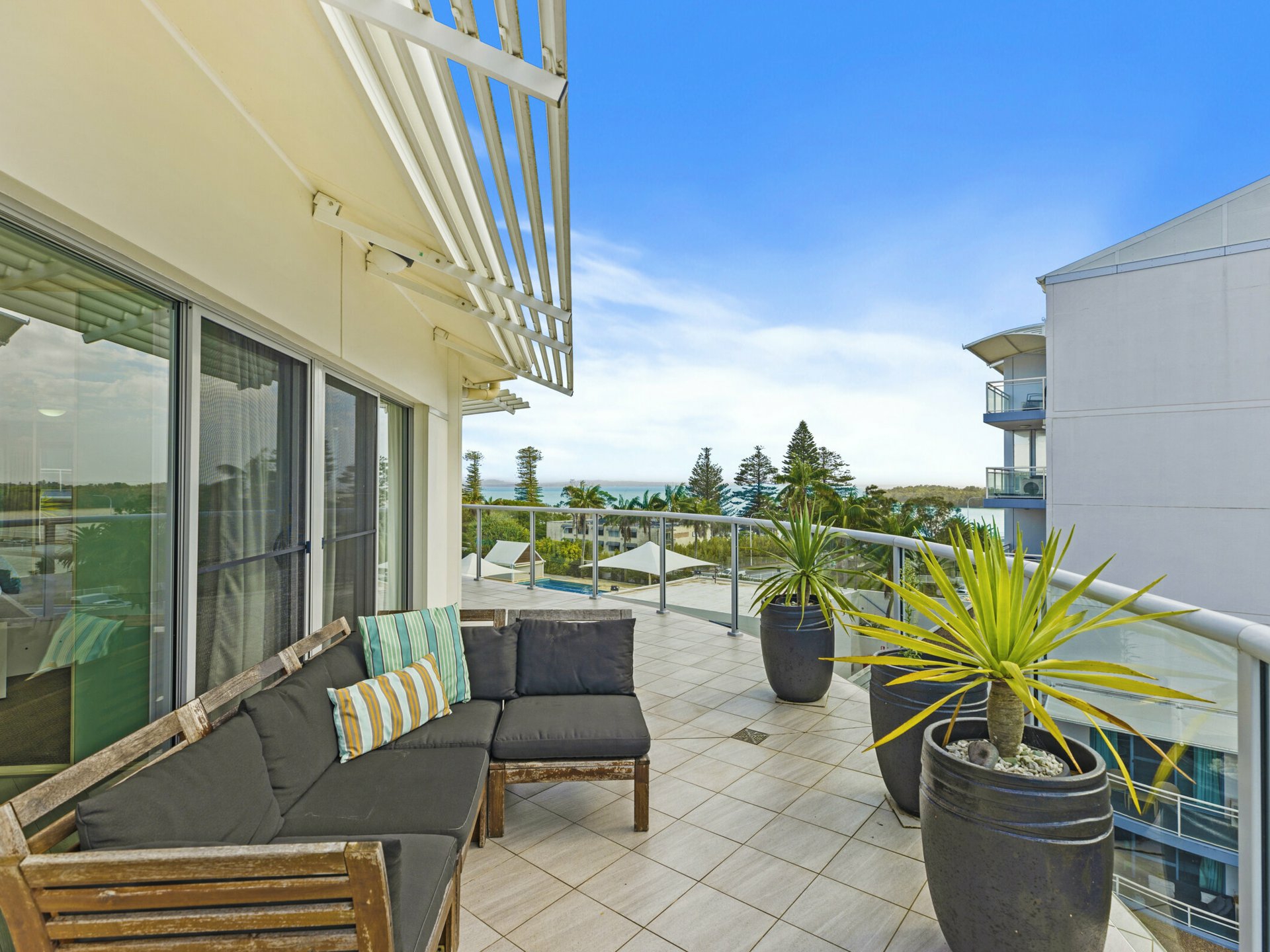 Boasting a coveted north-easterly aspect, the apartment captures gorgeous ocean, channel and lake views enjoying refreshing coastal breezes all year round.