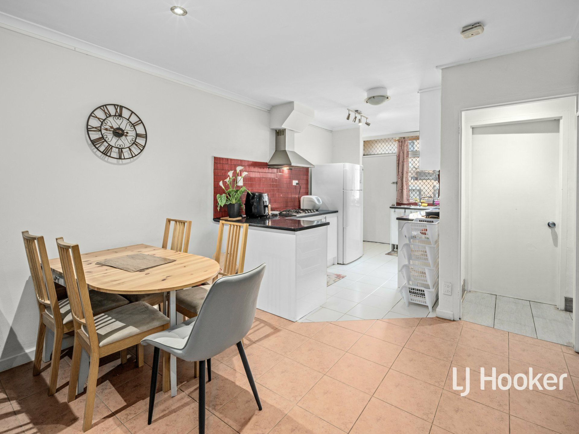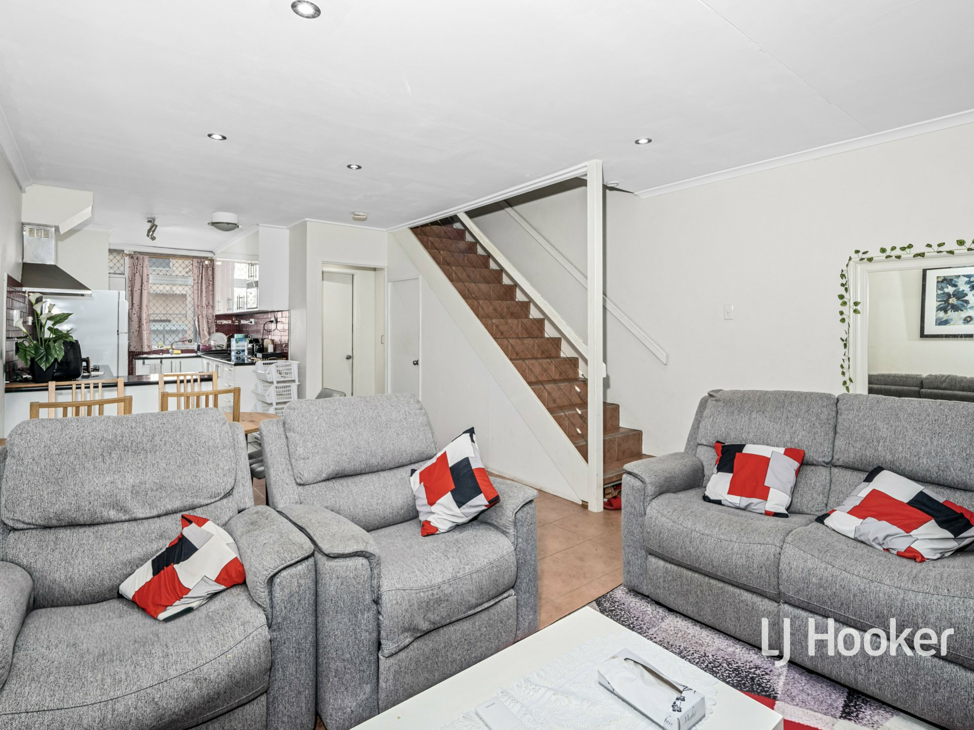 Upon entry, you’re welcomed by an open-plan living and dining area that flows through to the modern kitchen, complete with a gas cooktop, oven and ample cupboard space. The downstairs bathroom is modern and well-maintained, featuring a shower, basin and toilet.