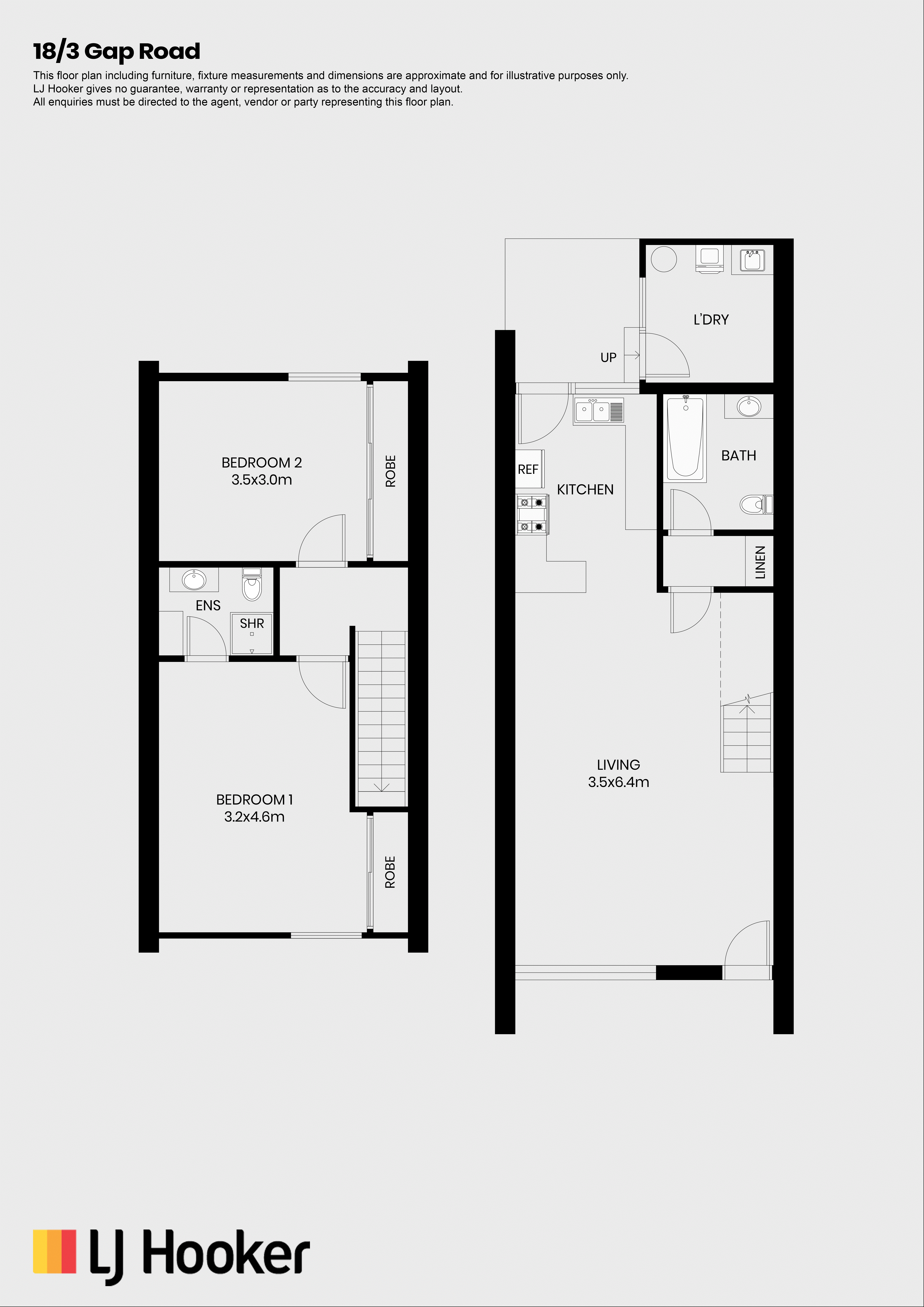 Upstairs, both bedrooms include built-in robes, with the main bedroom offering the added convenience of a private ensuite and its own balcony.