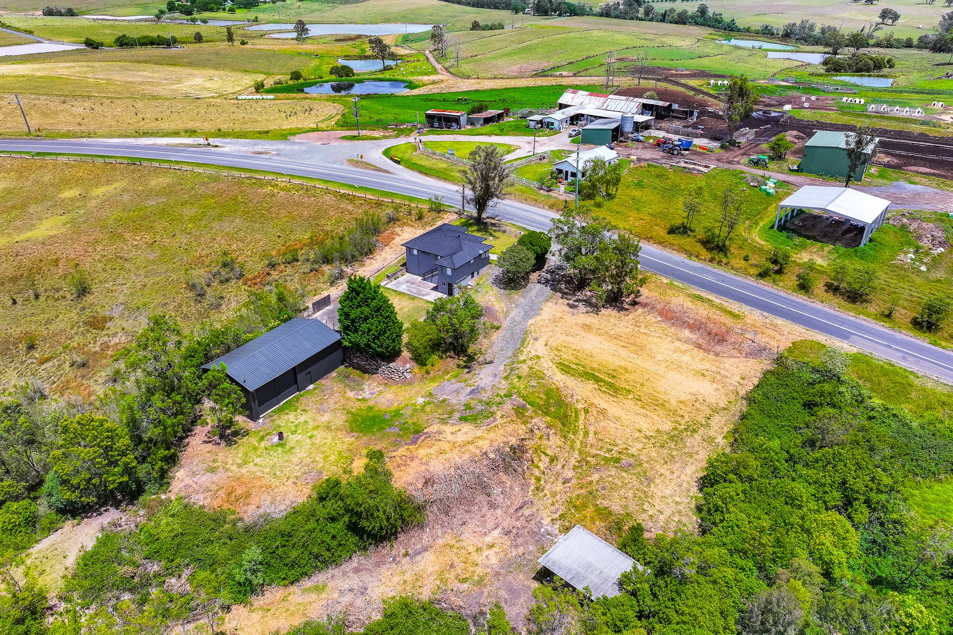 Outdoor infrastructure is a major highlight, with a large concreted shed perfect for storage/workshop setup plus an open machinery shed, two dams and dual road frontages. Additionally, there is an outdoor powder room with laundry or storage potential located beneath the home.
