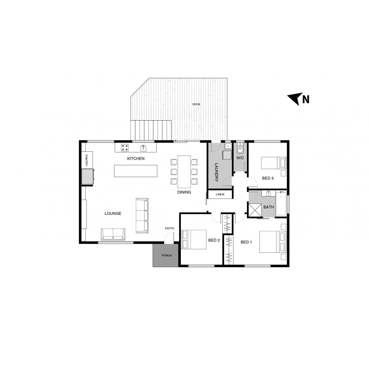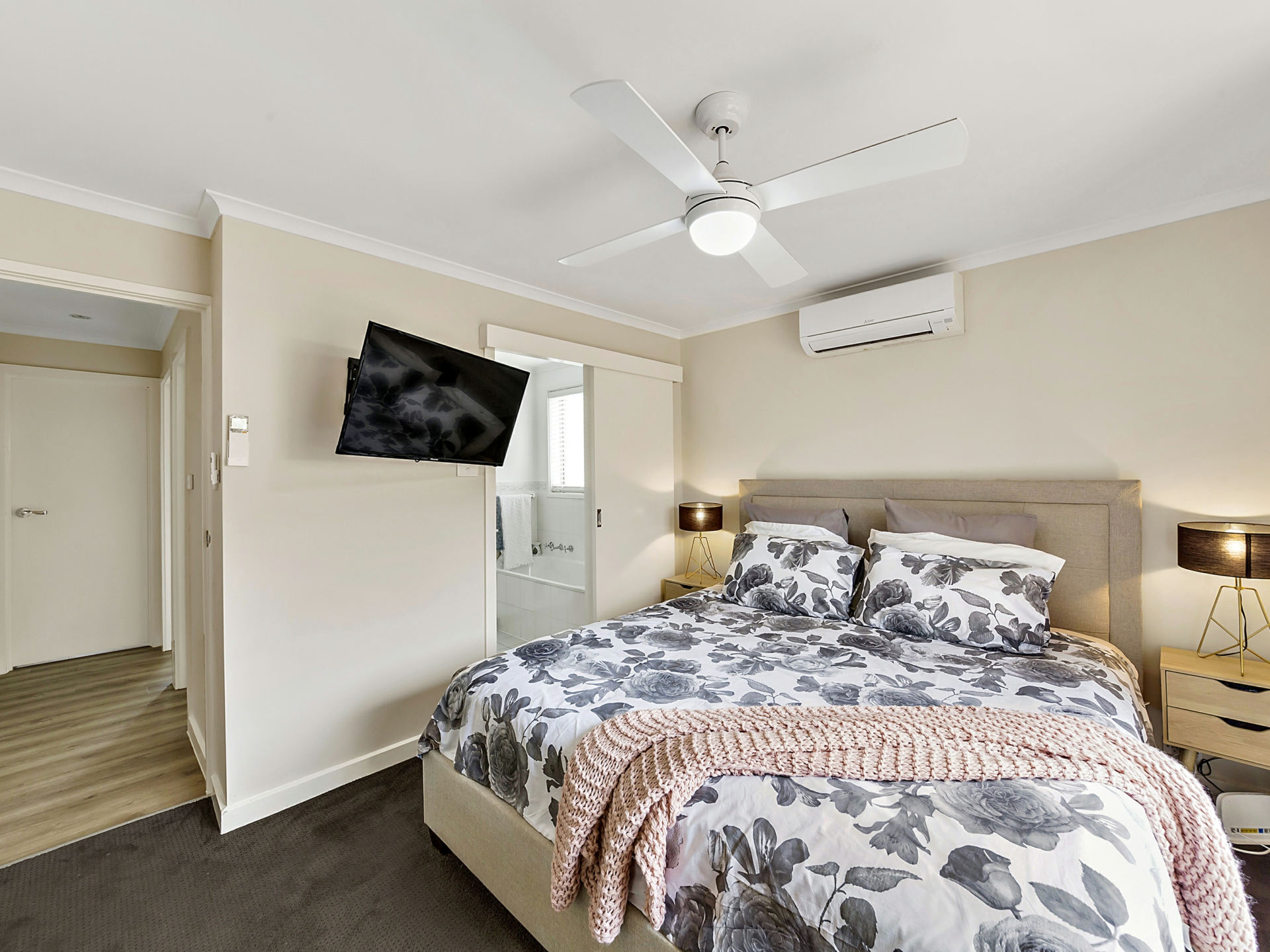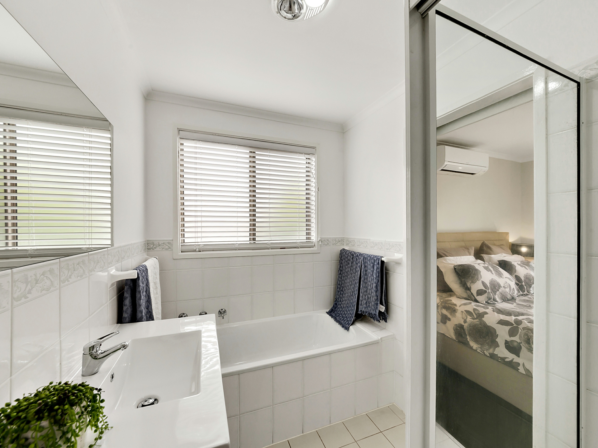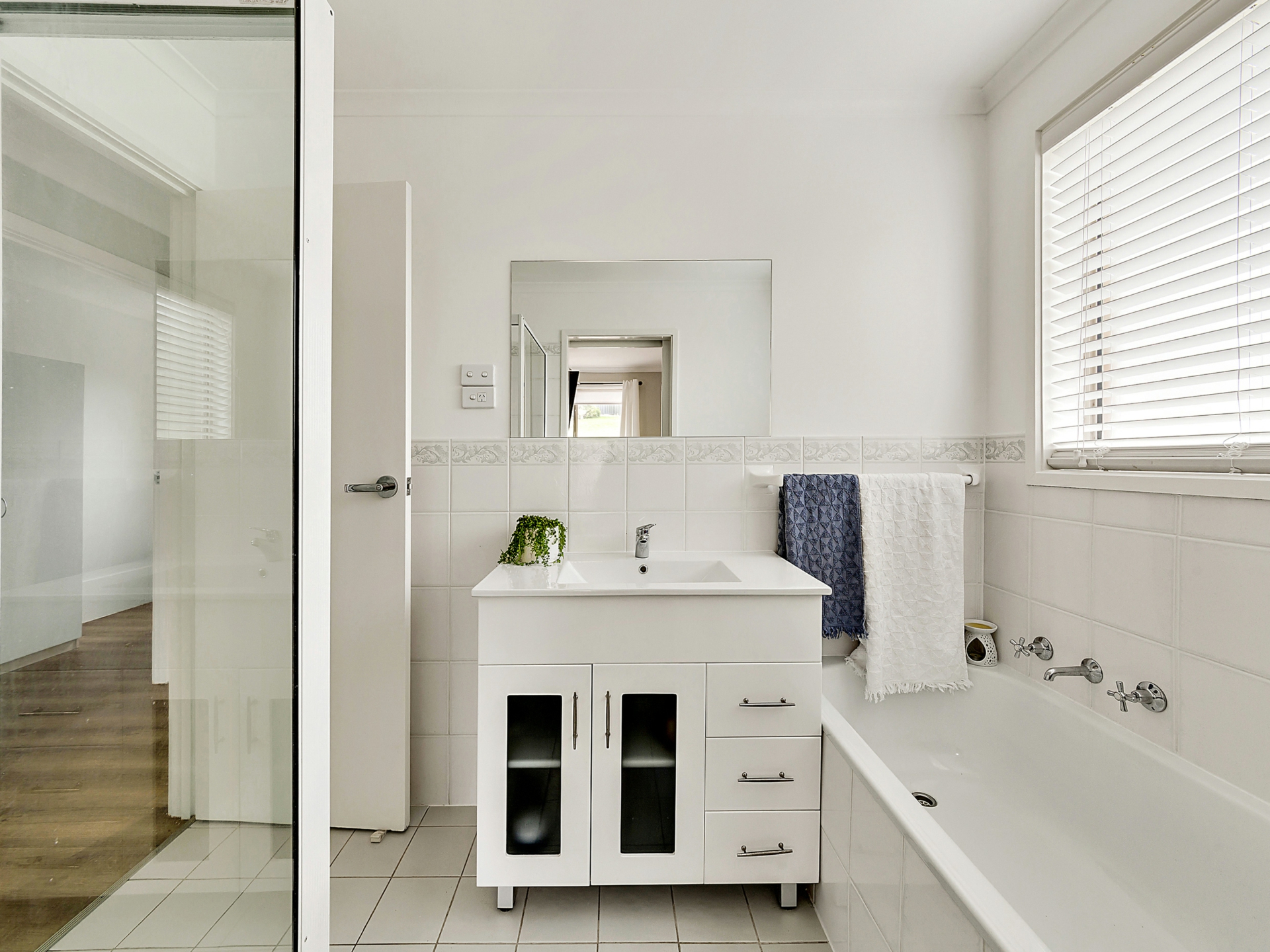 Walking through the home, you'll find three bedrooms, with built in robes in two. The master bedroom is oversized with plenty of space to fit a king bed with direct access to the two-way main bathroom.