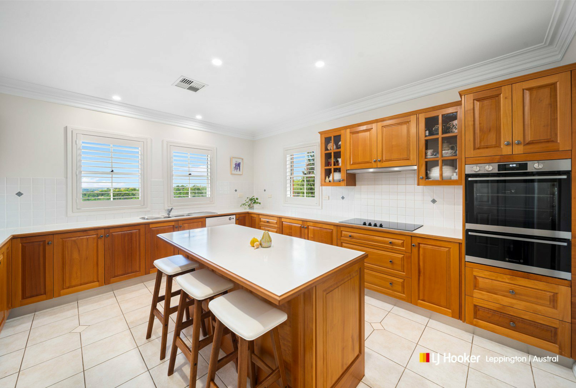 - Elegant timber kitchen with island bench and premium 900mm cooktop