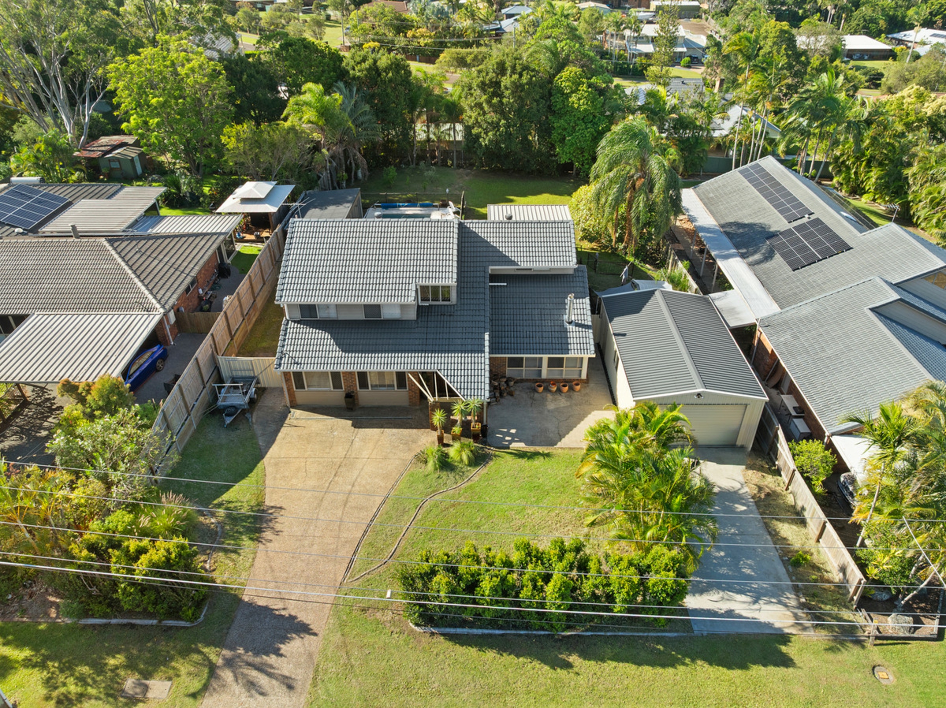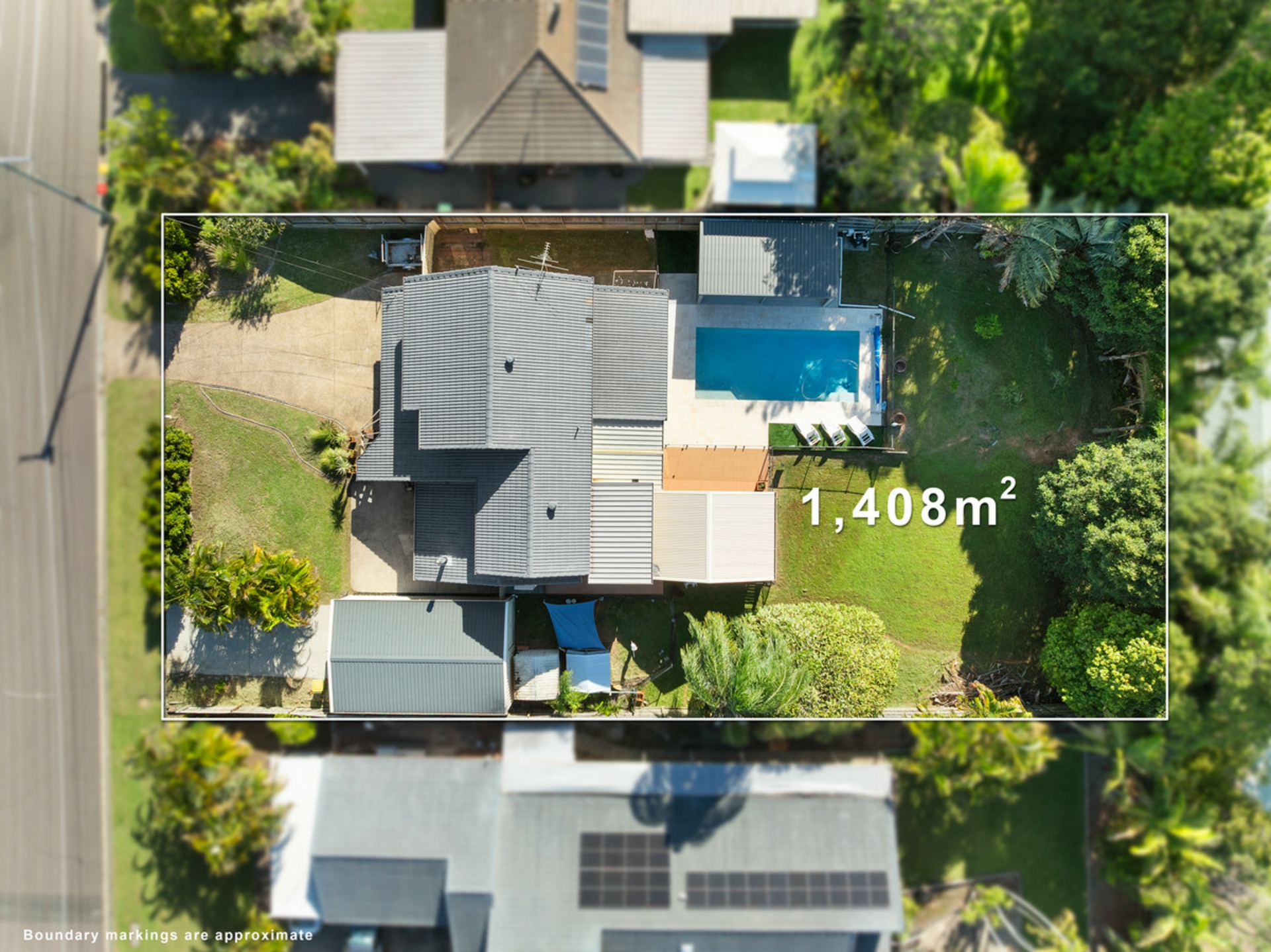 -Large 1408m2 fully fenced back yard with large lawn area and generous side access