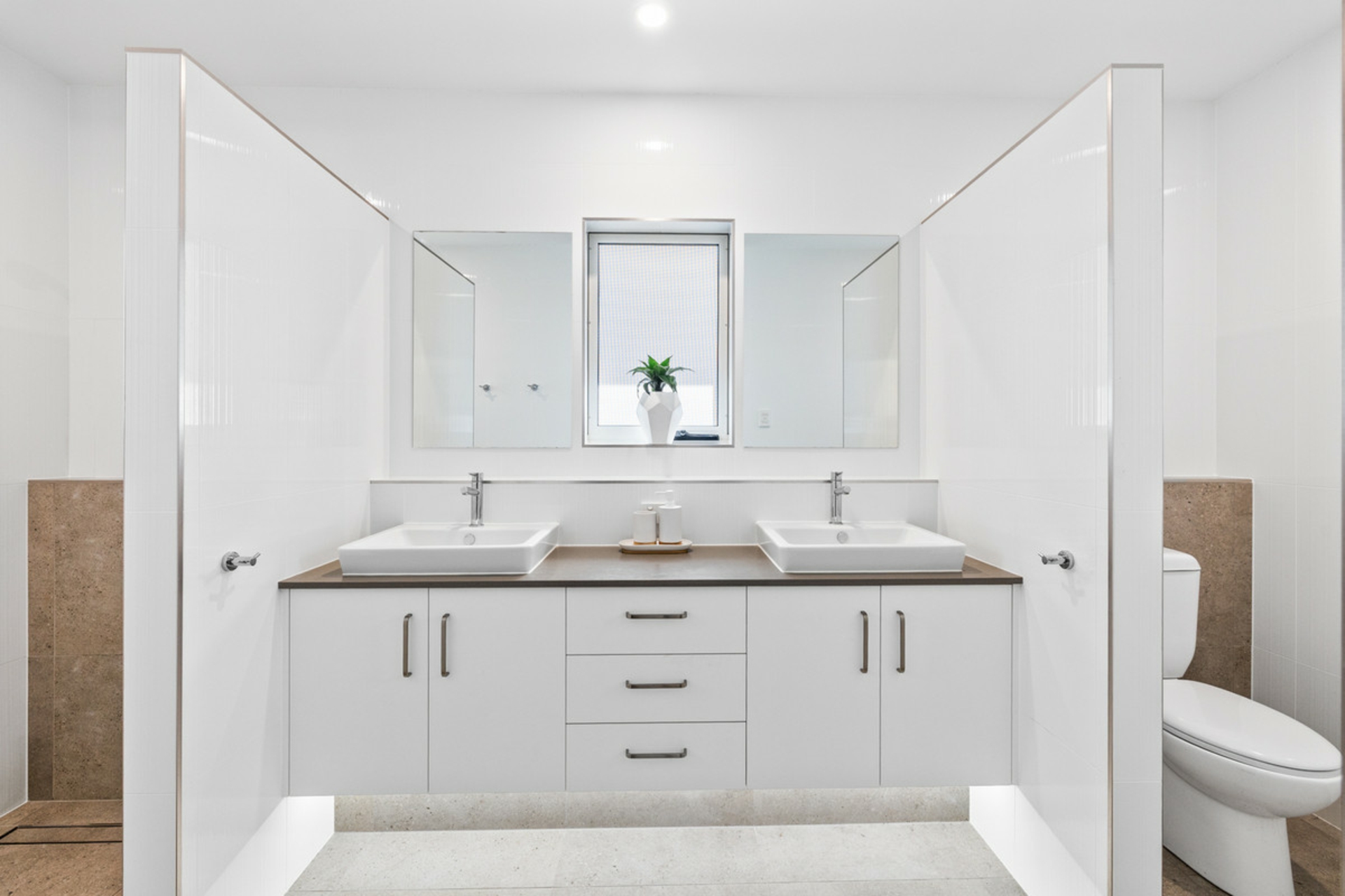 • Luxurious ensuite with floor to ceiling tiles, stone benchtops and under-cabinet mood lighting