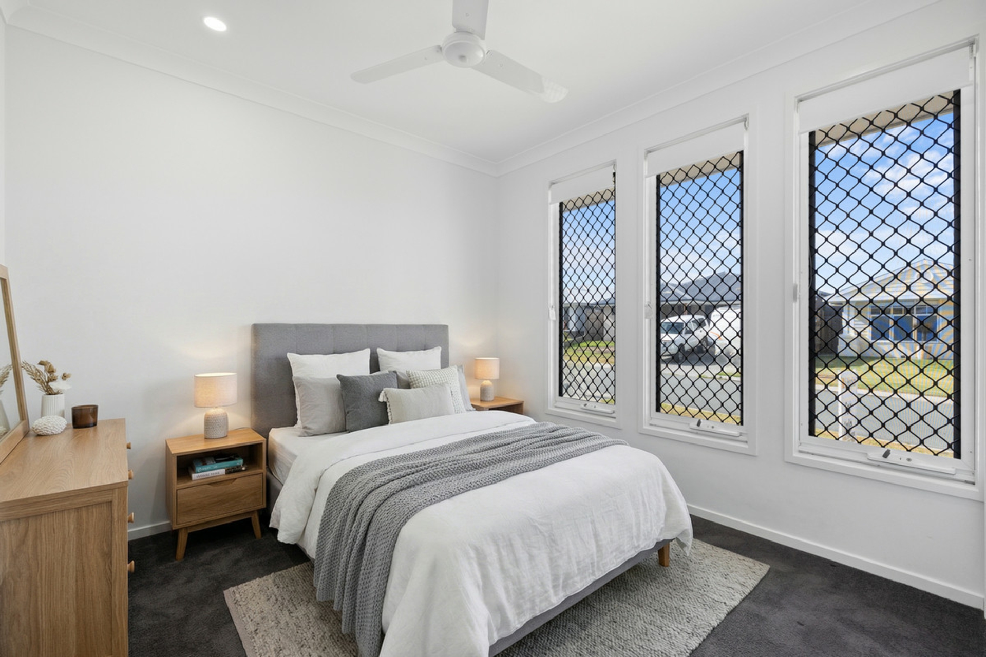 • Security screens and fans throughout