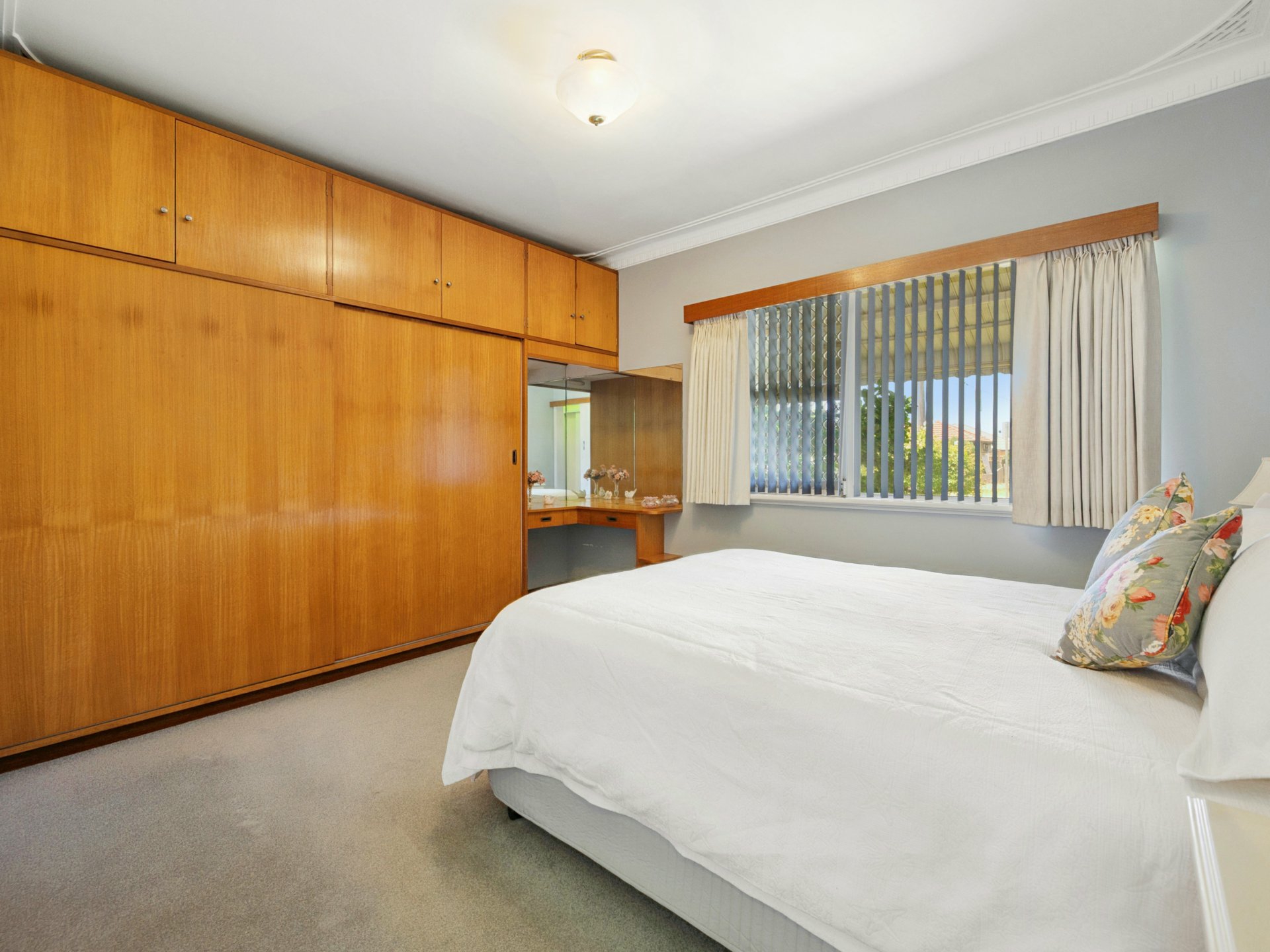 The home is well maintained and practical in design, featuring three bedrooms, a central bathroom, and the added convenience of a separate secondary shower located within the main bedroom.