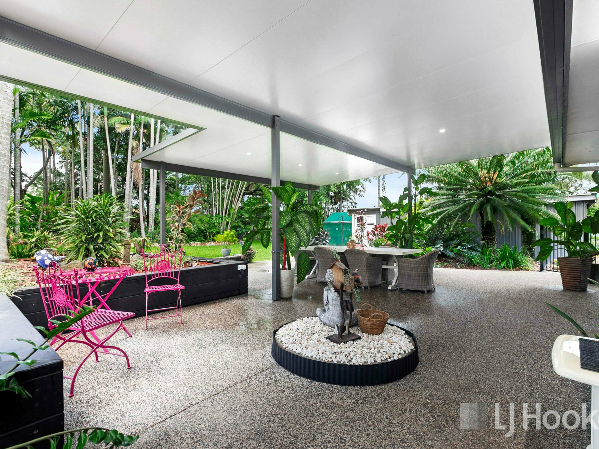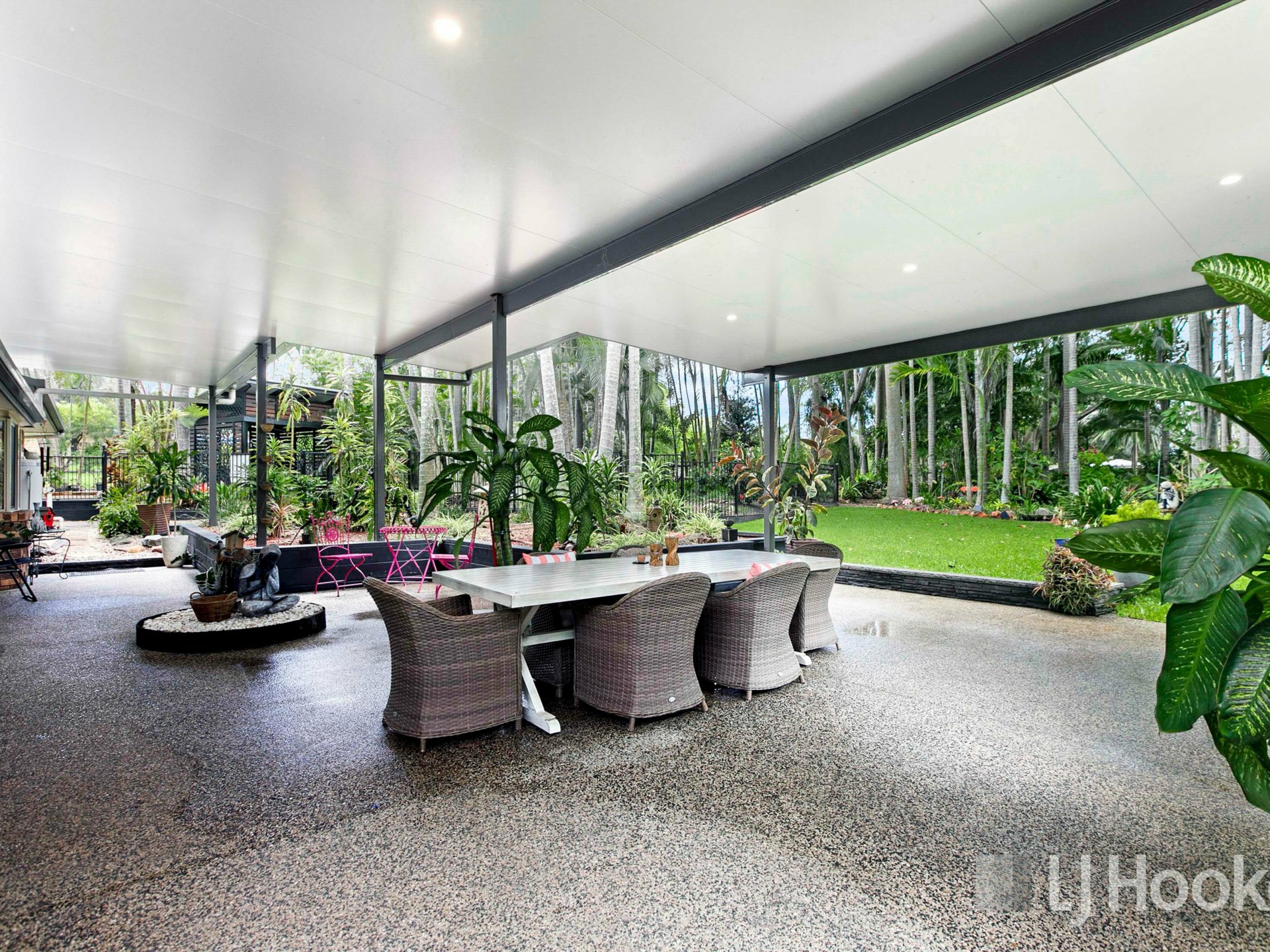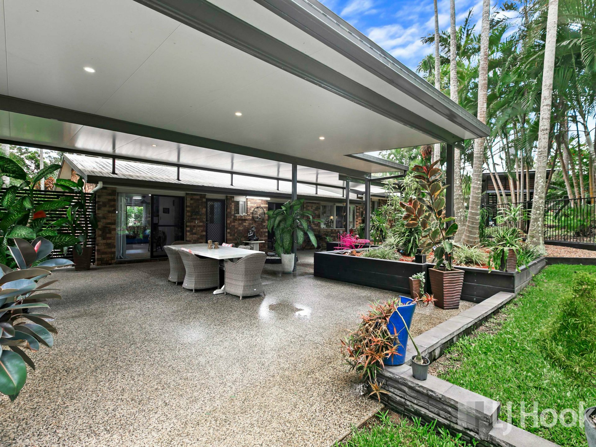Step outside and you’ll find a huge covered entertainment area overlooking the saltwater inground pool and beautifully maintained grounds. The one-acre block also features a bore, providing a practical solution for maintaining the gardens and lawn.