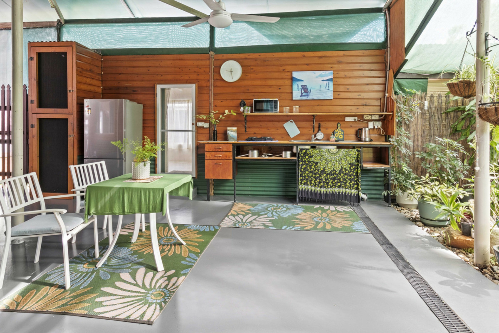 This home comprises of two completely separate cabins, both fully renovated, the original is built around a caravan like most homes in the park, and the second is the main cabin built from quality timber. The large outdoor living area sits in between the two cabins which each have their own bathroom and toilet.