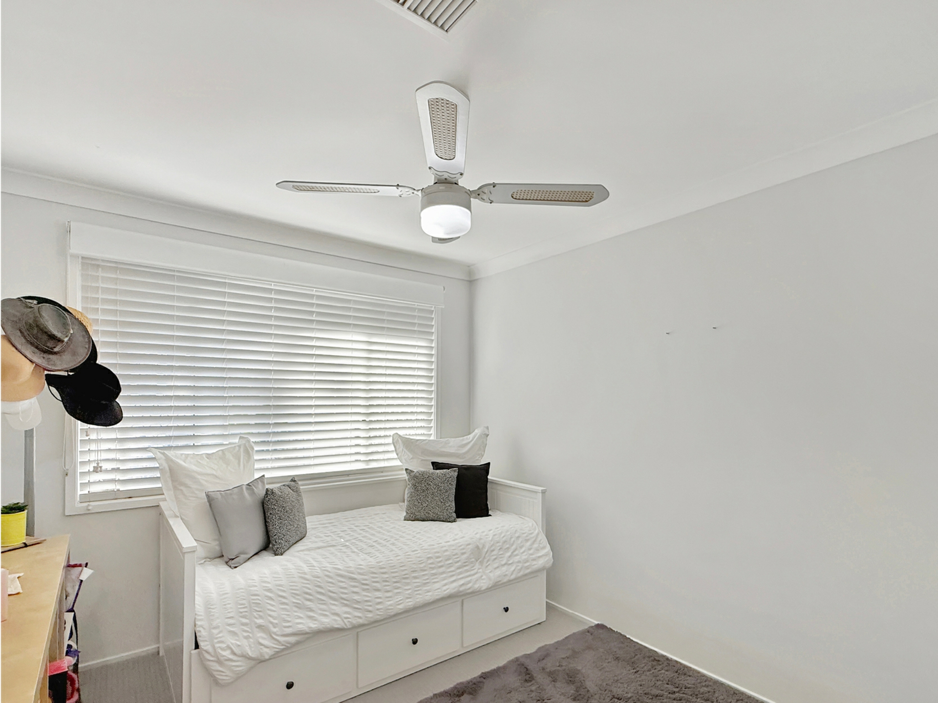 Every bedroom is spacious and fitted with ceiling fans, plush carpet, and newly installed ducted air-conditioning for year-round comfort. The main bedroom enjoys a private ensuite, while the updated family bathroom features a separate bath, shower, and the added luxury of heated flooring - a premium touch that elevates everyday living. A dedicated study is tucked away within the double lock-up garage, offering the perfect work-from-home environment or quiet retreat.