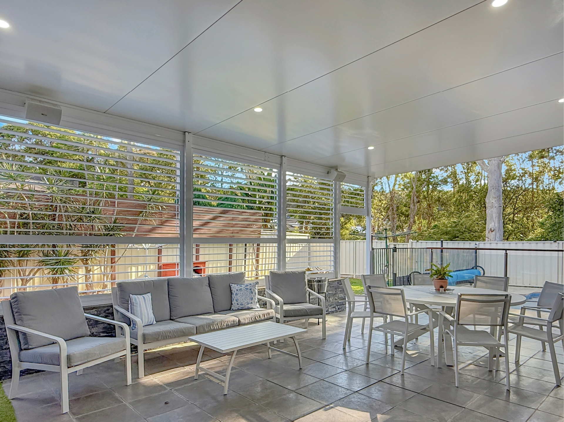 Stepping outside reveals one of the property's standout features: a spacious covered alfresco area equipped with built-in speakers, ideal for gatherings in any season. The heated saltwater pool, complete with a custom laser-cut cover, provides the perfect all-year-round escape. The low-maintenance backyard with astro turf ensures easy living, while direct access to a peaceful private reserve enhances the sense of serenity and privacy.