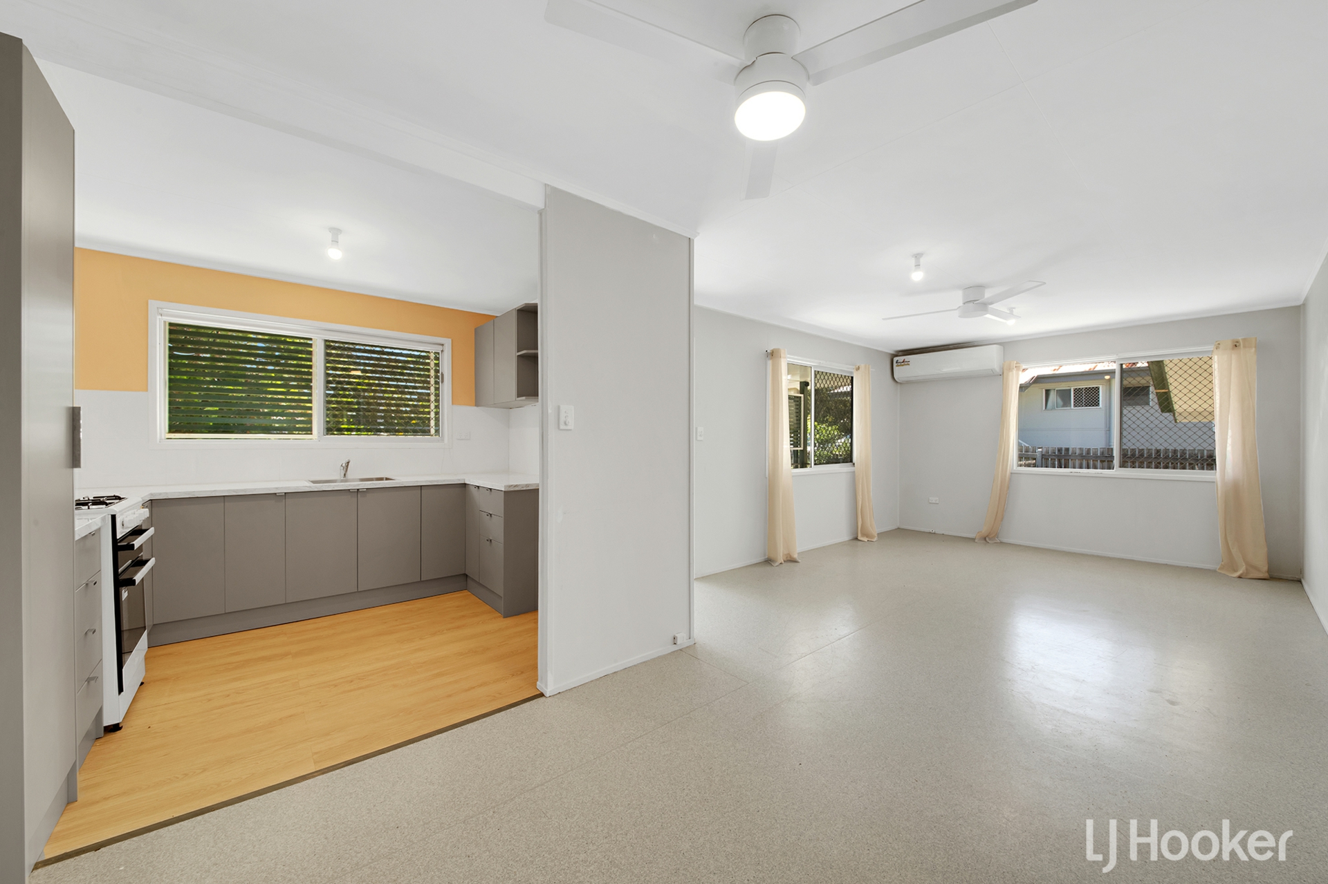 Inside, the slightly elevated construction invites airflow under the house for natural cooling. The brand-new kitchen brings modern convenience, while the open-plan living and dining area creates a practical everyday hub.