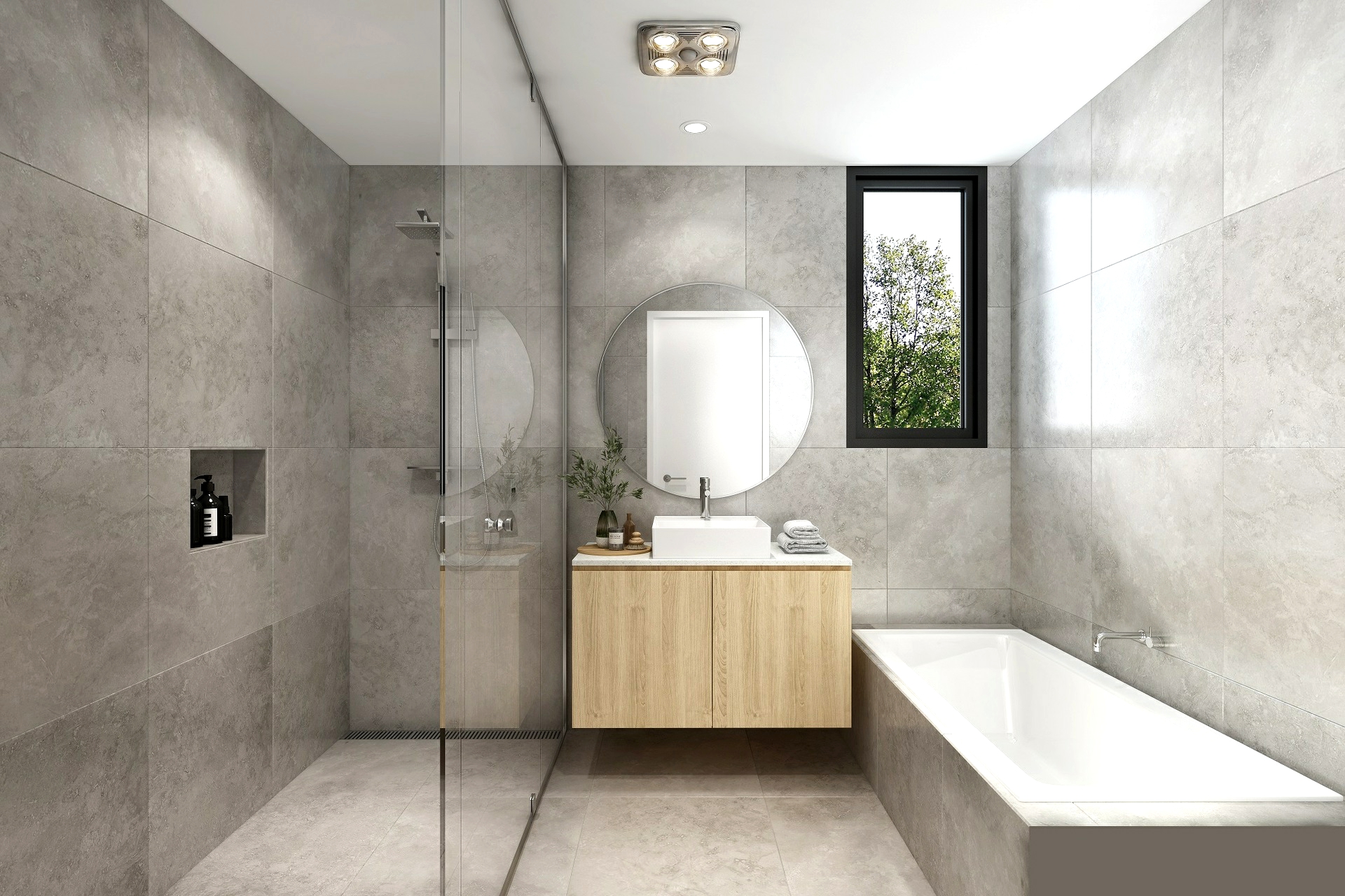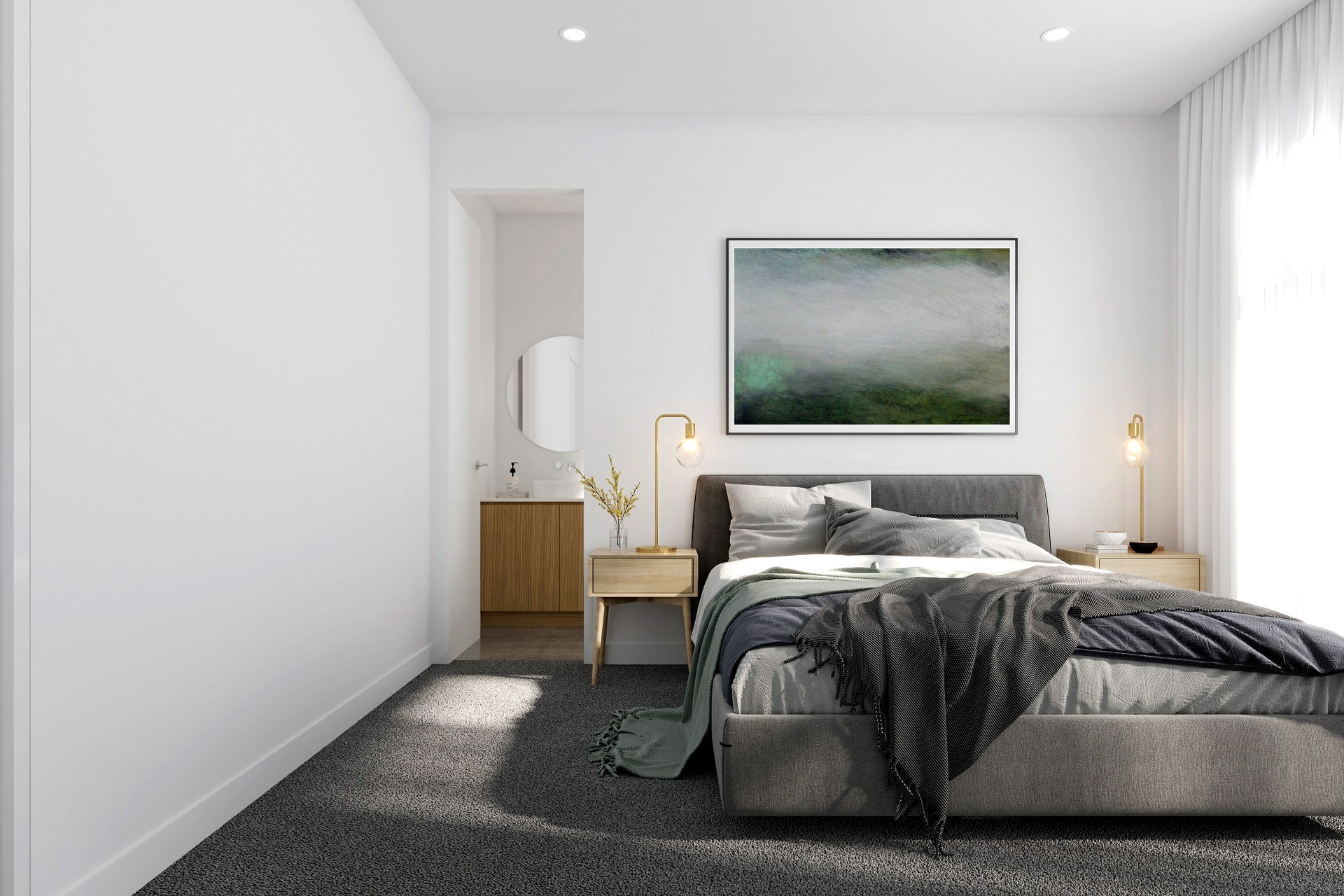- Stone vanity benchtops and floor-to-ceiling tiles in bathroom and ensuite