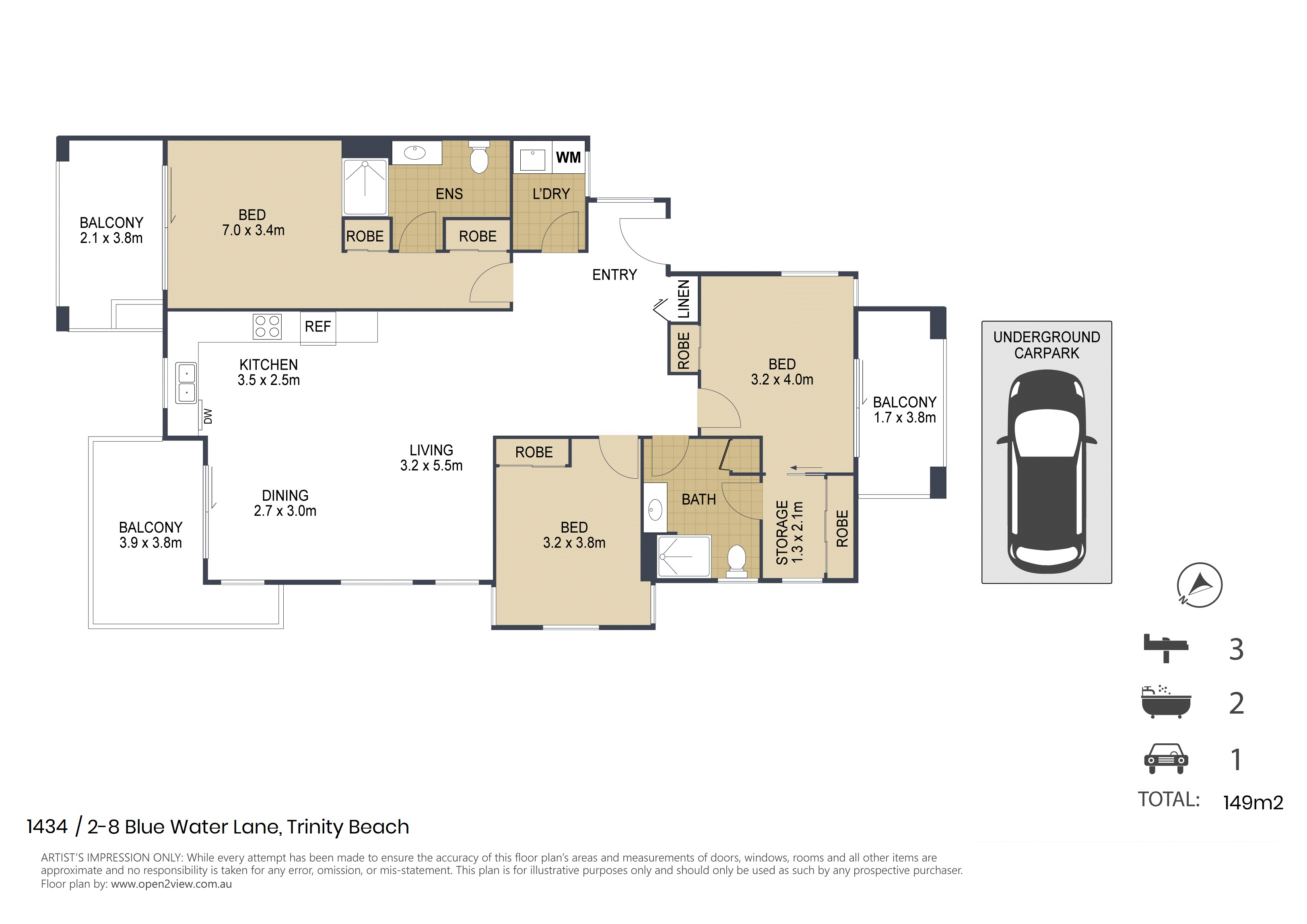 Each of the three bedrooms has been thoughtfully designed for comfort and tranquillity, while the two stylish bathrooms make mornings a breeze for families or guests. A secure underground car space further enhances the ease of resort-style living.