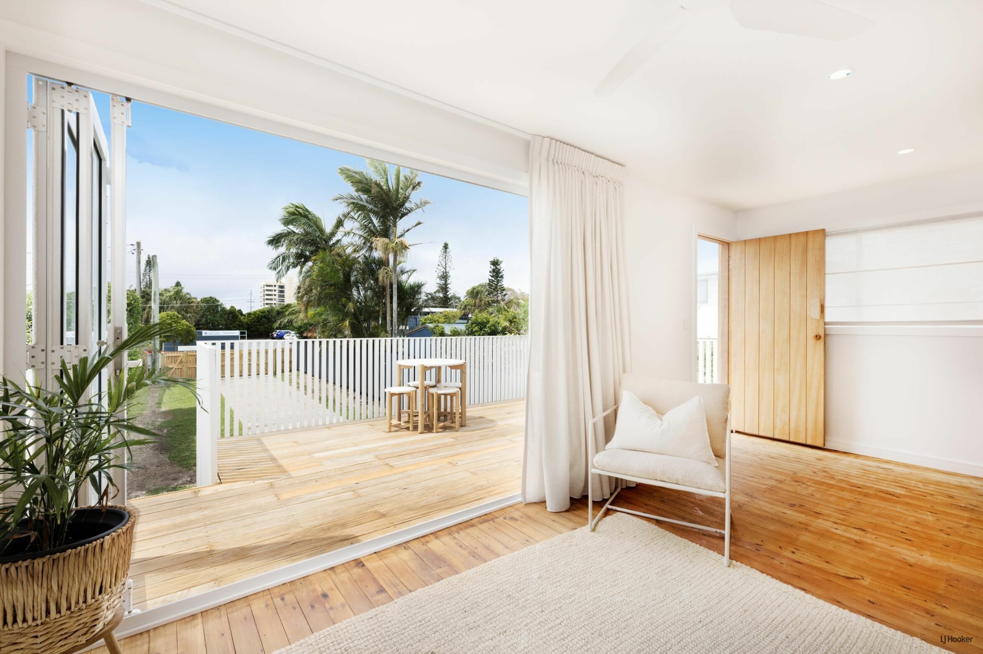 - Lounge area opens onto deck with bifold doors creating outdoor/indoor living