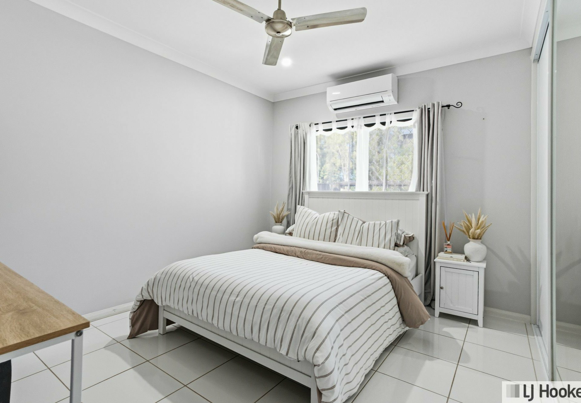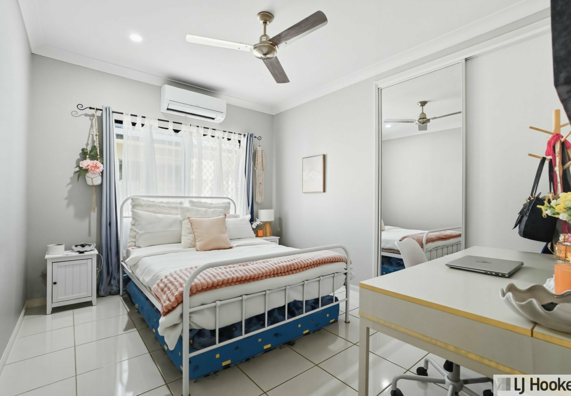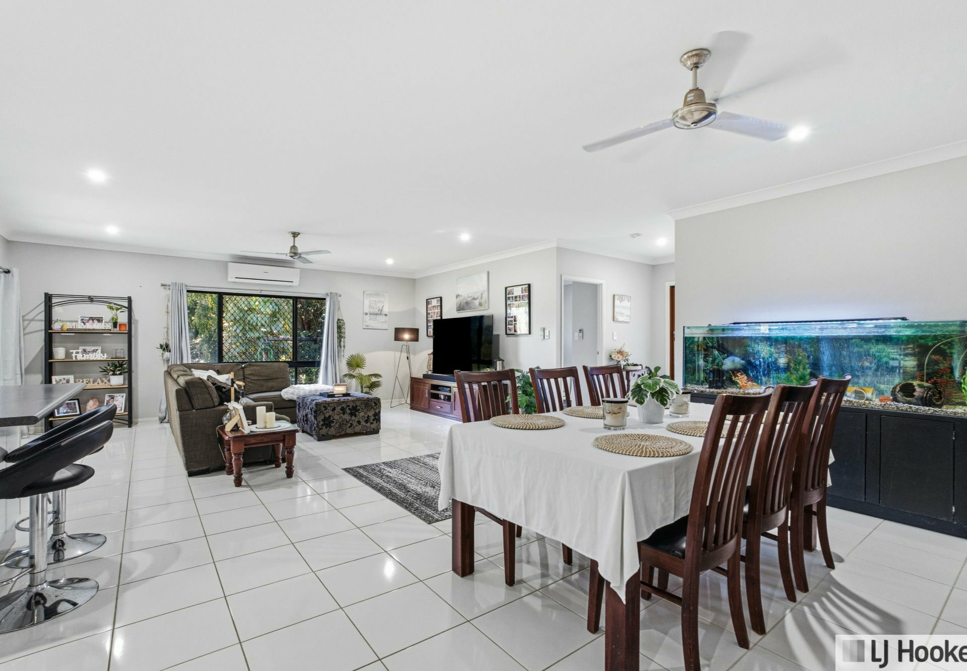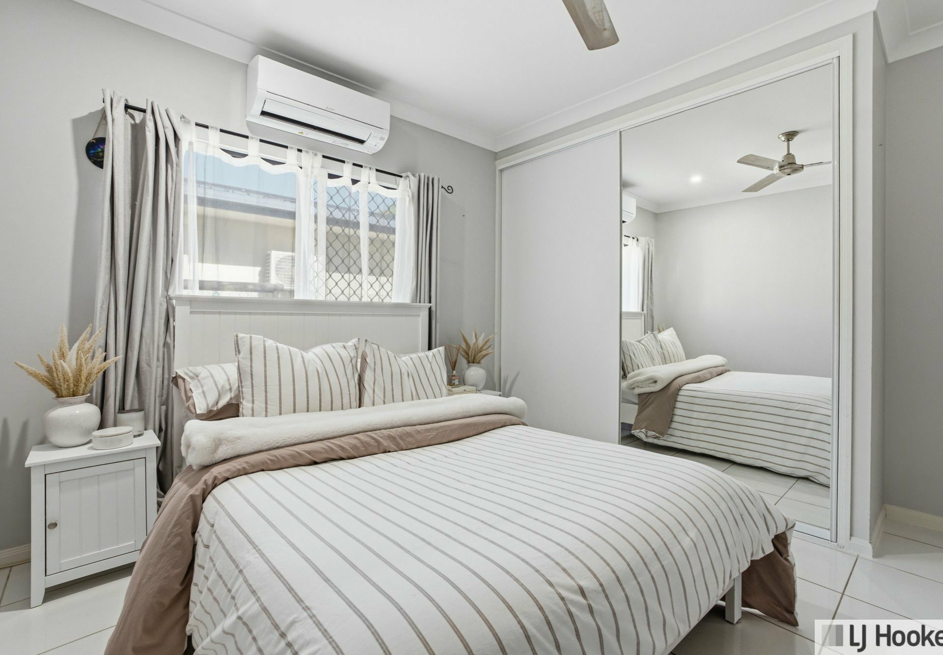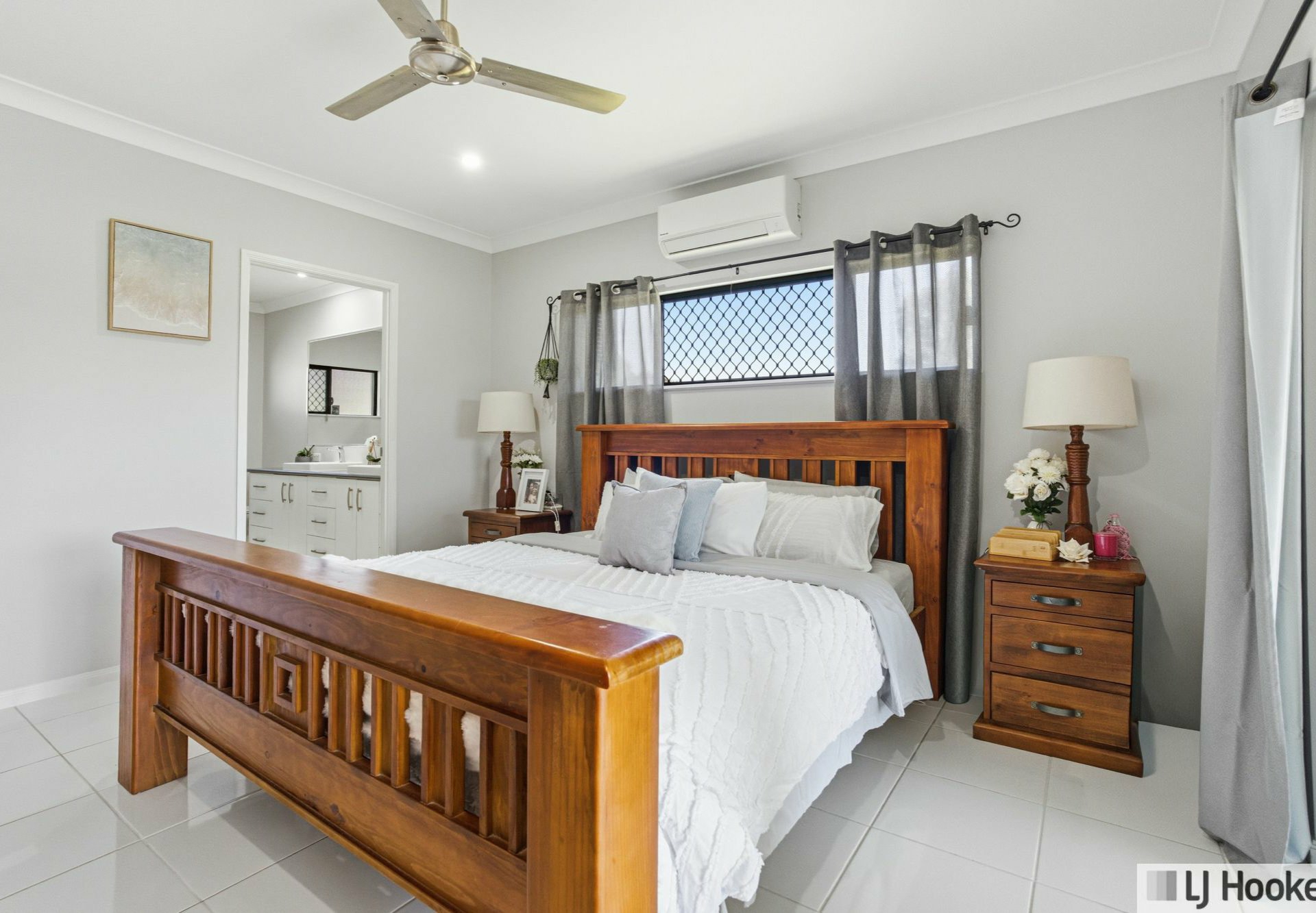 Fully tiled and air-conditioned throughout, the home showcases a fresh, neutral colour palette that enhances its bright and airy feel. Additional features include built-in wardrobes, a large separate internal laundry, security screens and doors, and a thoughtfully designed main bathroom with separate toilet and shower.