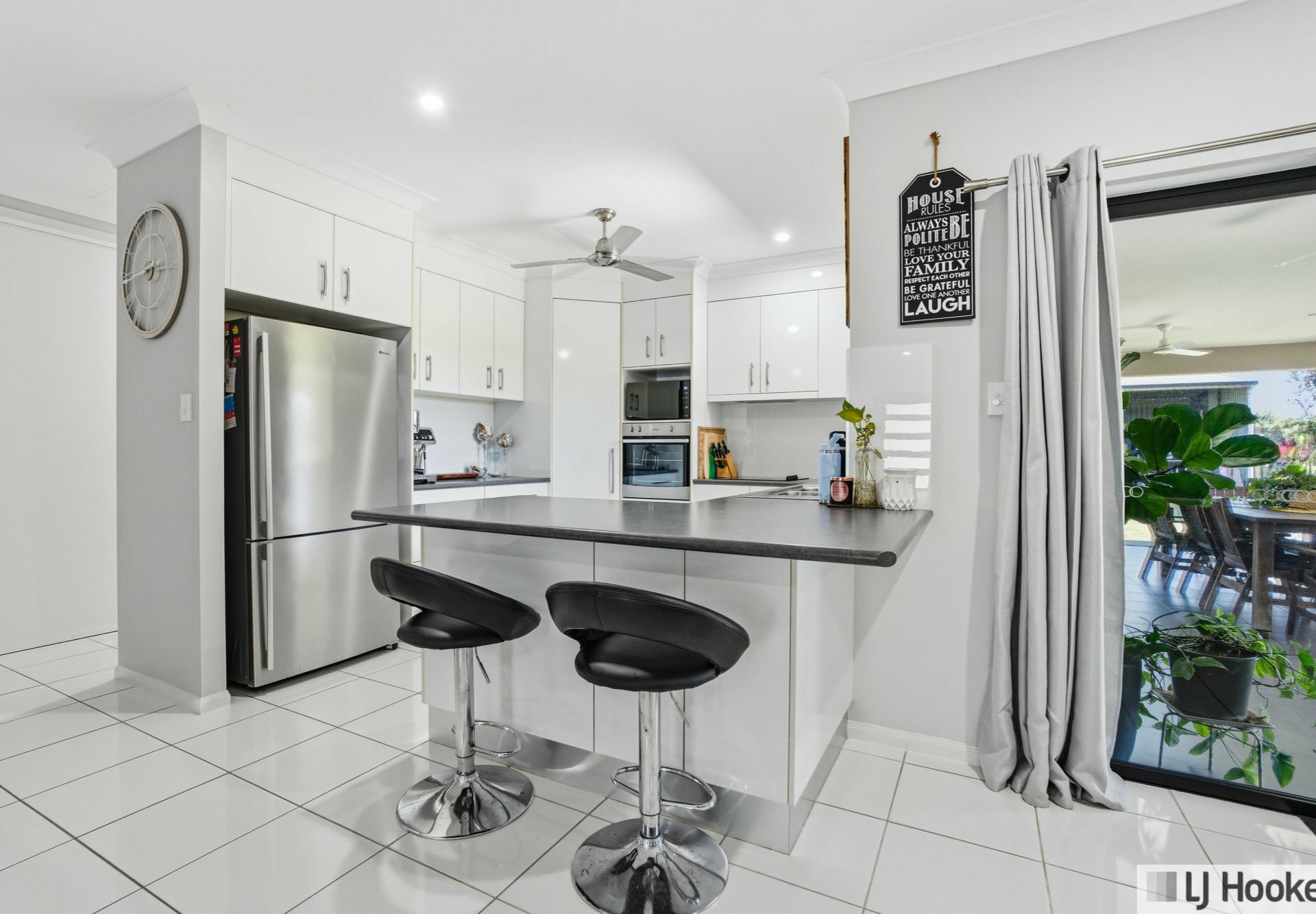 At the heart of the home, the light-filled open plan living, dining, and kitchen area creates an inviting space for everyday living and entertaining. The modern kitchen is well-equipped with ample storage, quality finishes, and a practical breakfast bar.