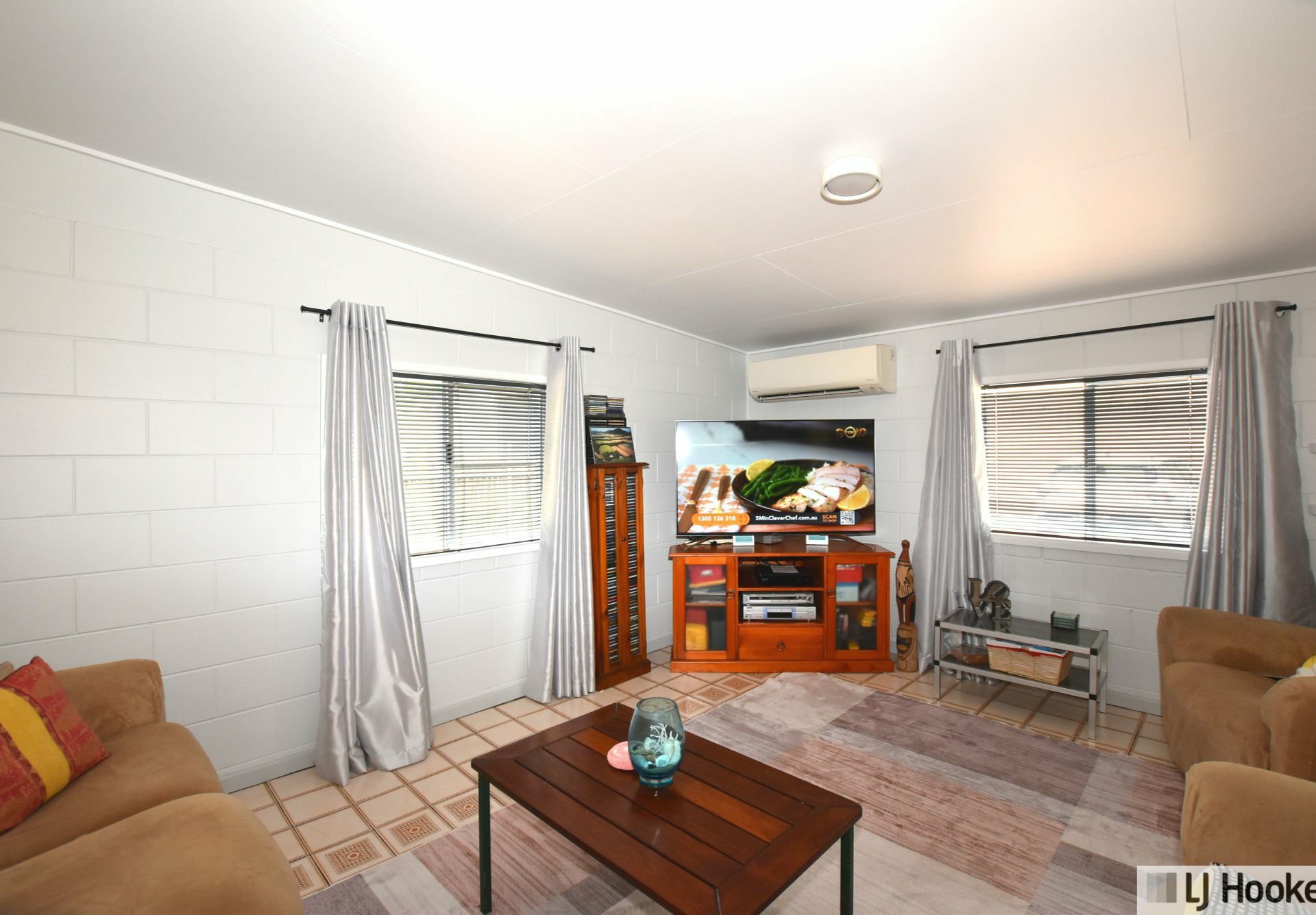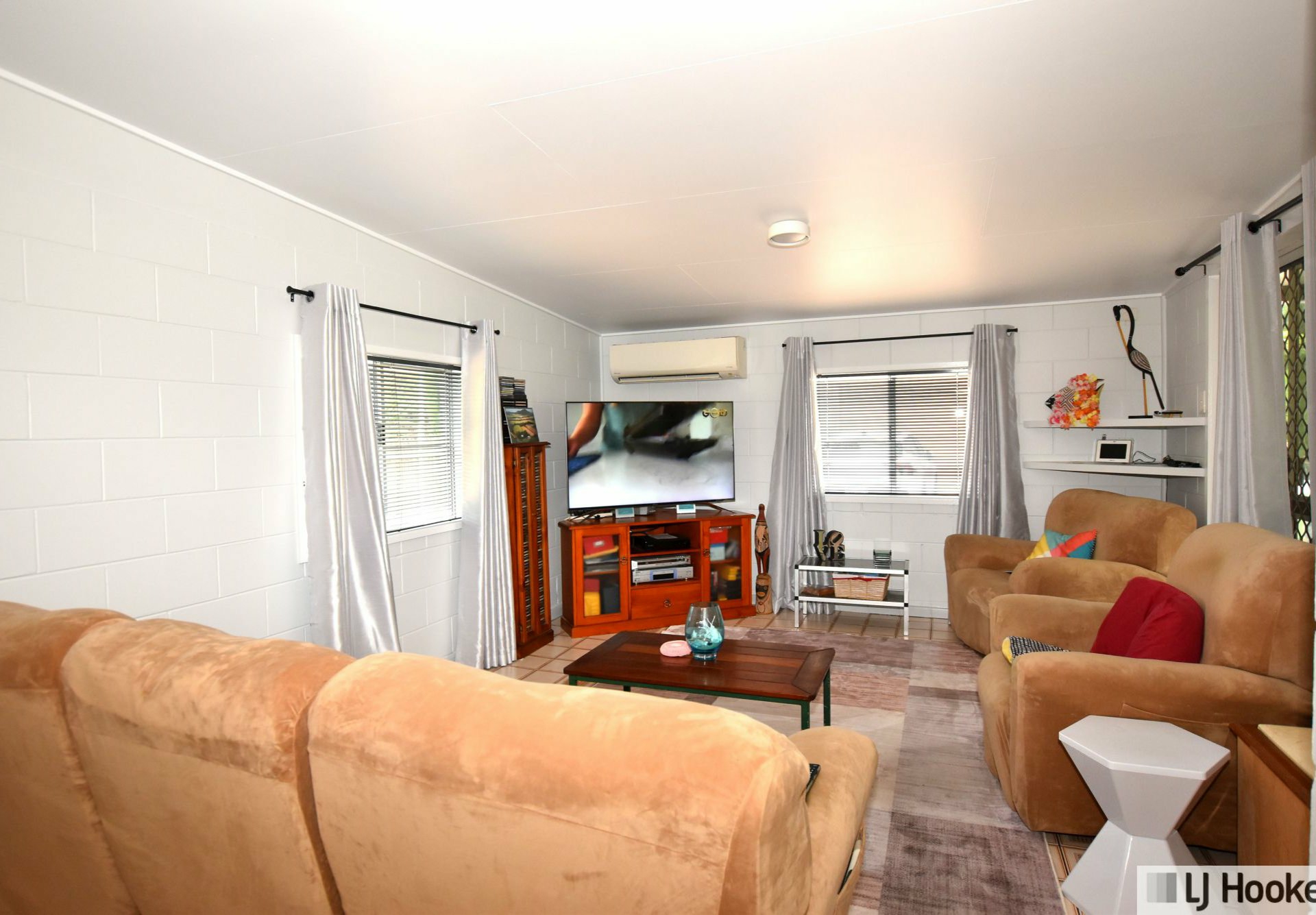 All two of the three bedrooms include built-in wardrobes, while the modern renovated bathroom adds style and practicality. The home is well equipped for year-round comfort with four air conditioners installed, throughout.
