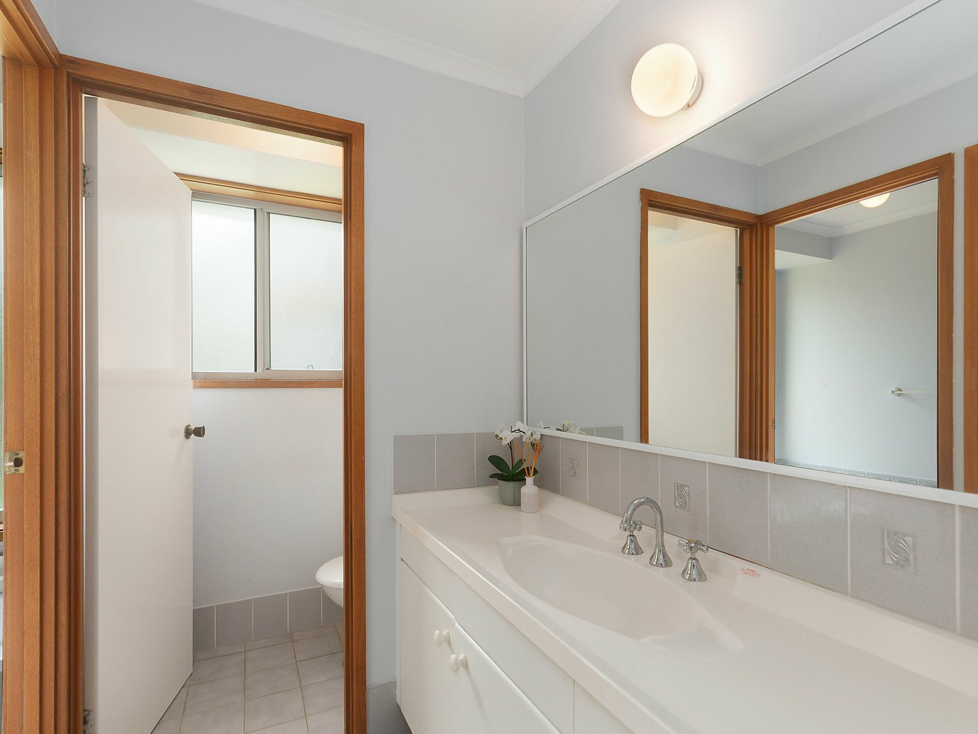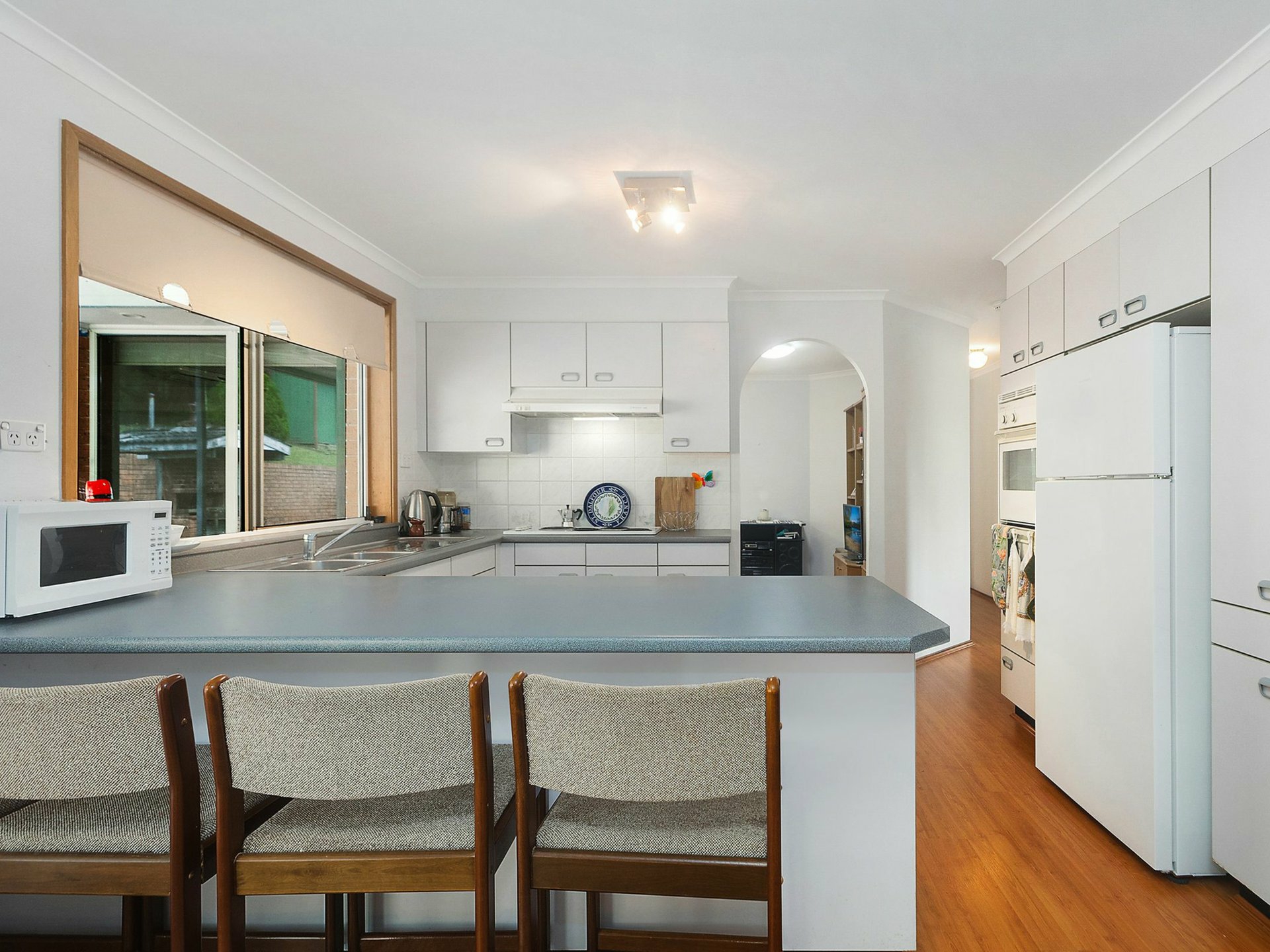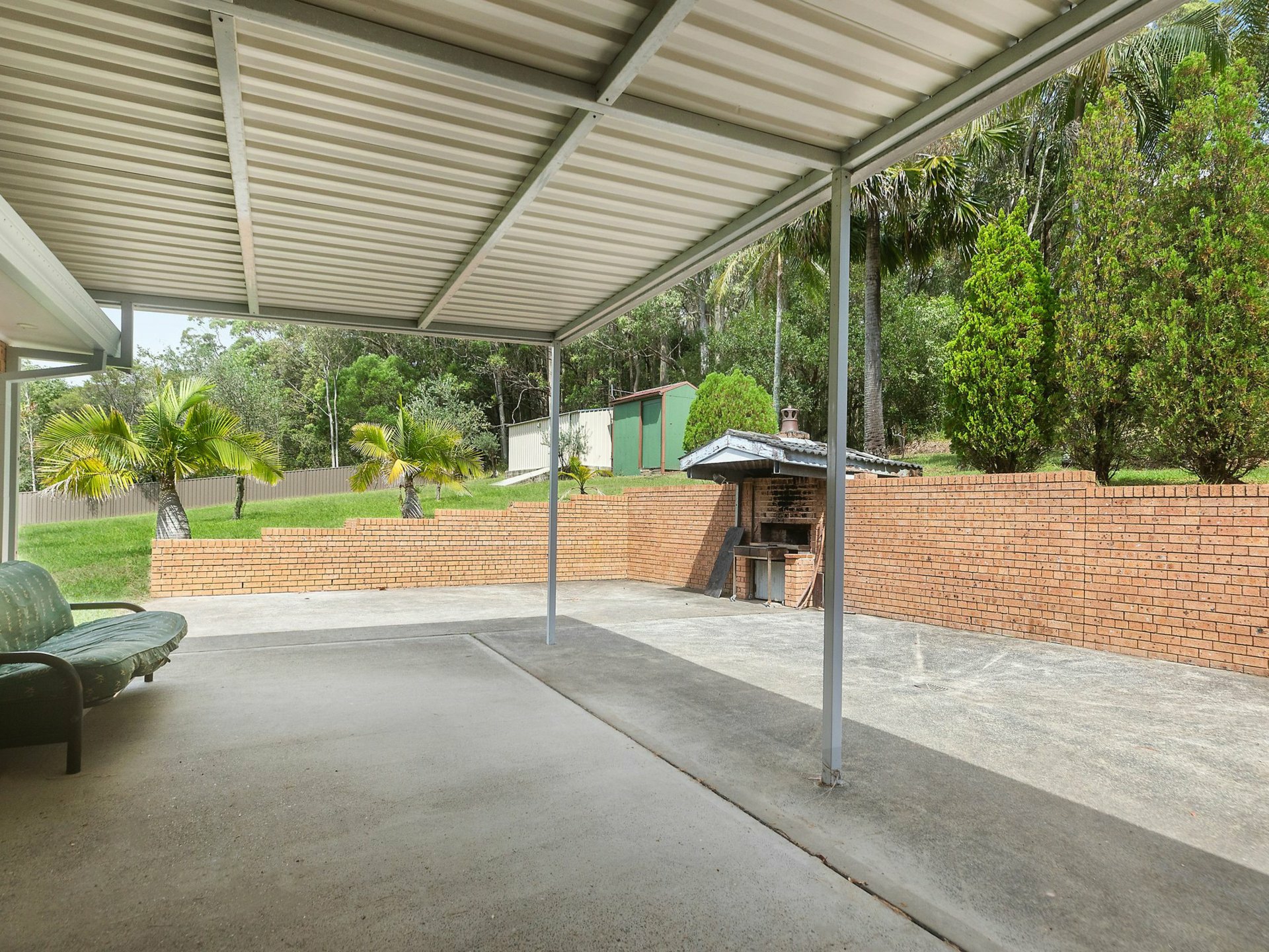 Set on a gently sloping 4803m2 allotment, the house features three bedrooms, all equipped with built in robes, providing ample storage space. The single bathroom is well appointed and designed to cater for the needs of a family.