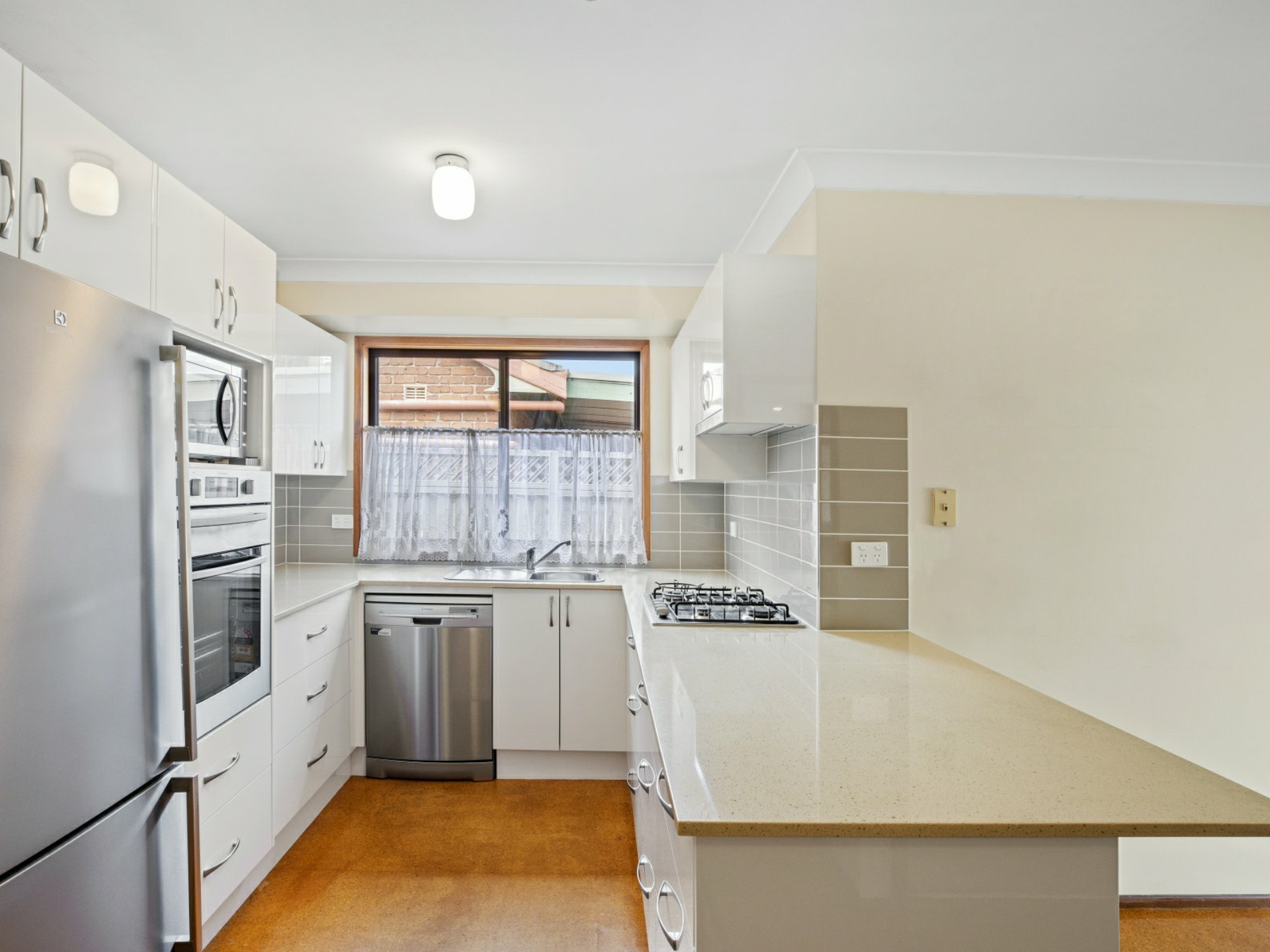 • Gourmet kitchen equipped with modern gas appliances & finishings.