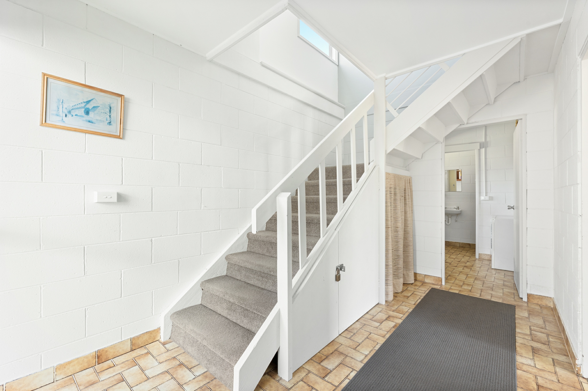 The internal stairs lead from the entry door to the upstairs hallway giving access to the main living/dining room. The kitchen is adjacent to the dining area and has excellent storage, electric