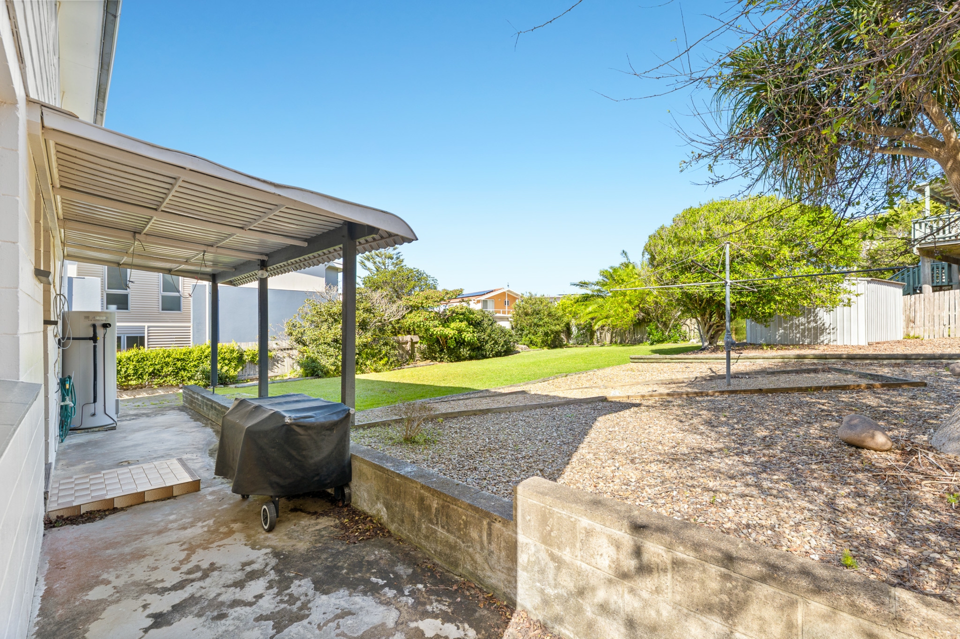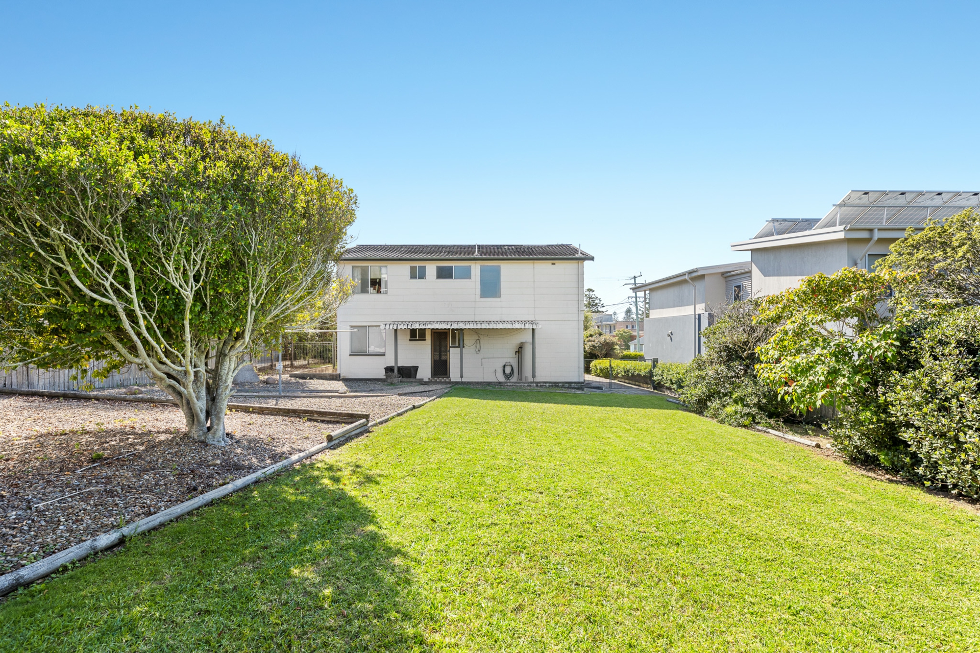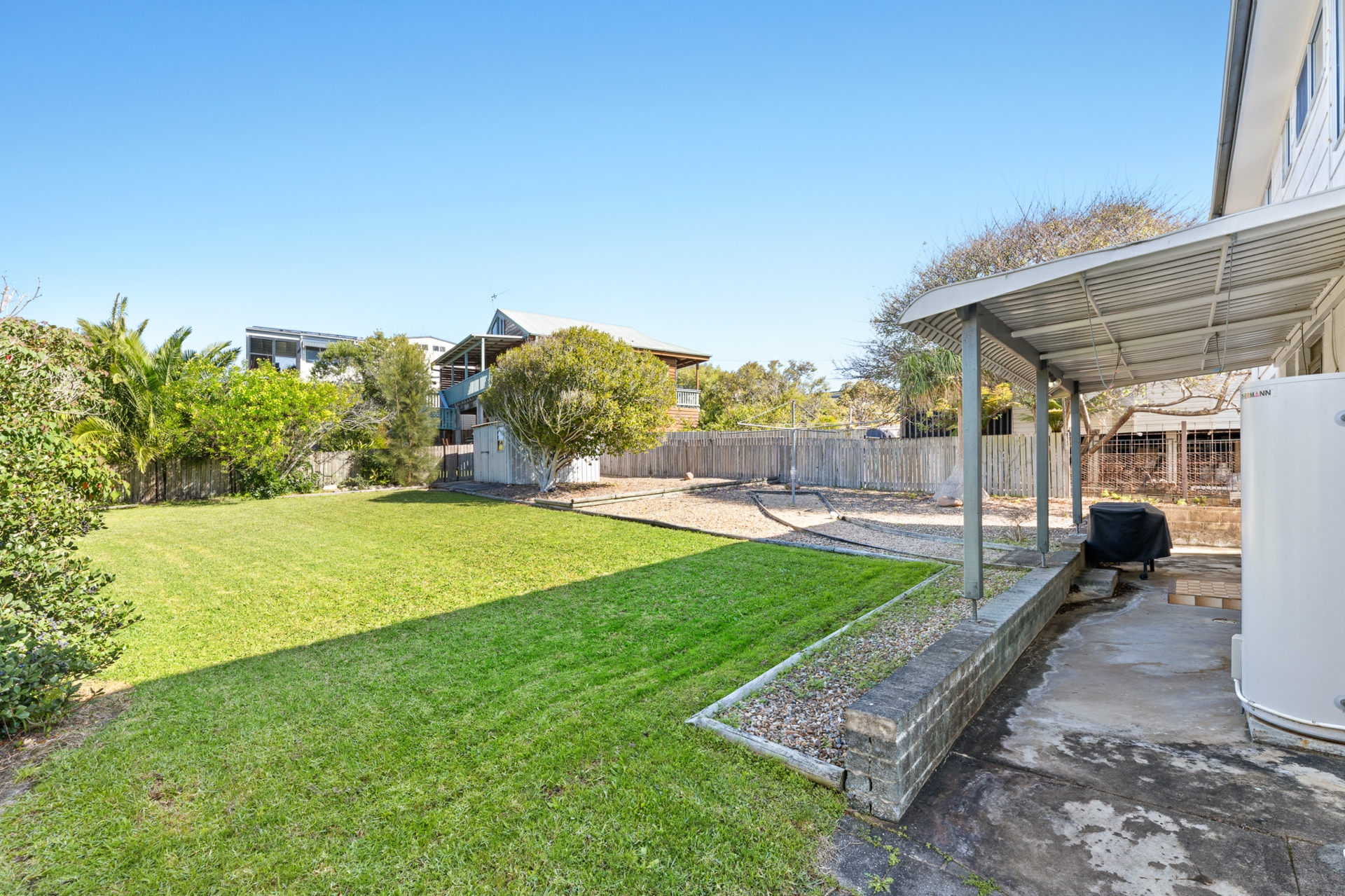 The rear yard is fully fenced and has a side gate. There is a paved parking area to the side of the house leading to the main entry, which would be suitable for boat or caravan parking.