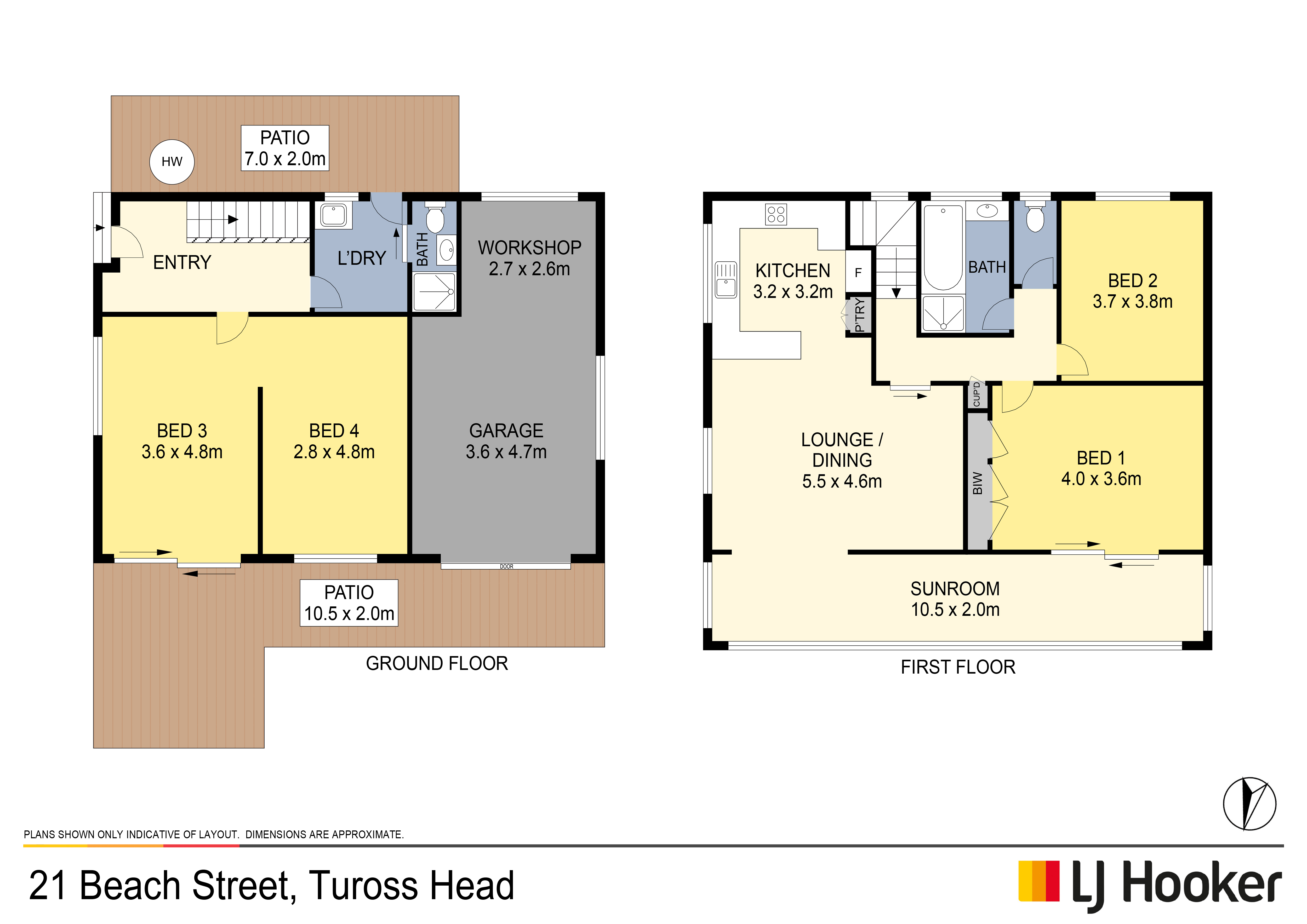 The main entry hall leads to the third bedroom (sliding door access to front verandah) and fourth bedroom/games room, with separate laundry to the rear (external access to rear yard), and separate adjacent bathroom (shower plus toilet). There is a single lock up garage/workshop downstairs with concrete driveway.