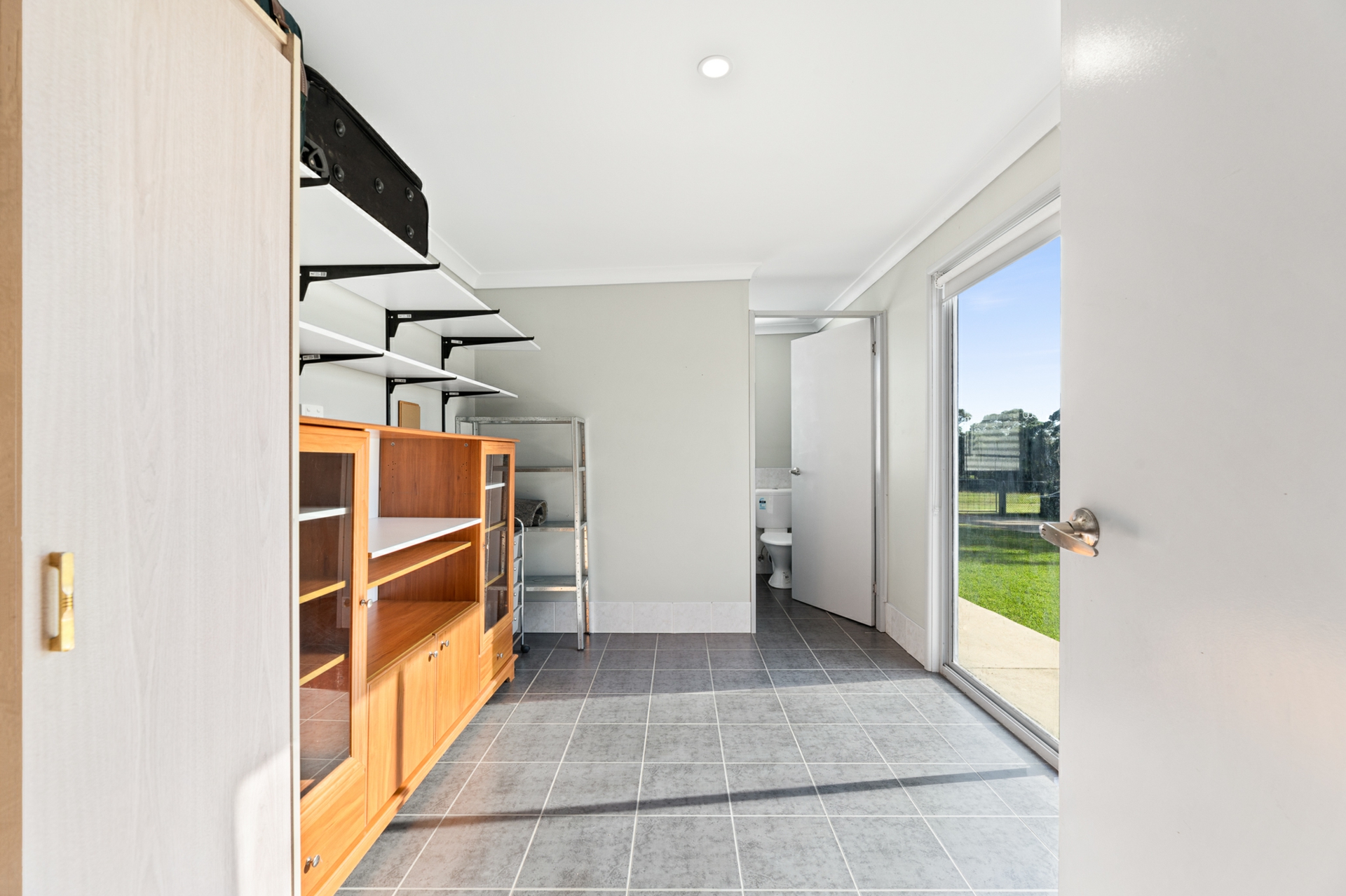 studio/hobby room/sleepout with adjacent laundry and toilet. There is also a separate mower shed. The rear yard is fully fenced with a concrete side path on one side, and both sides gated.