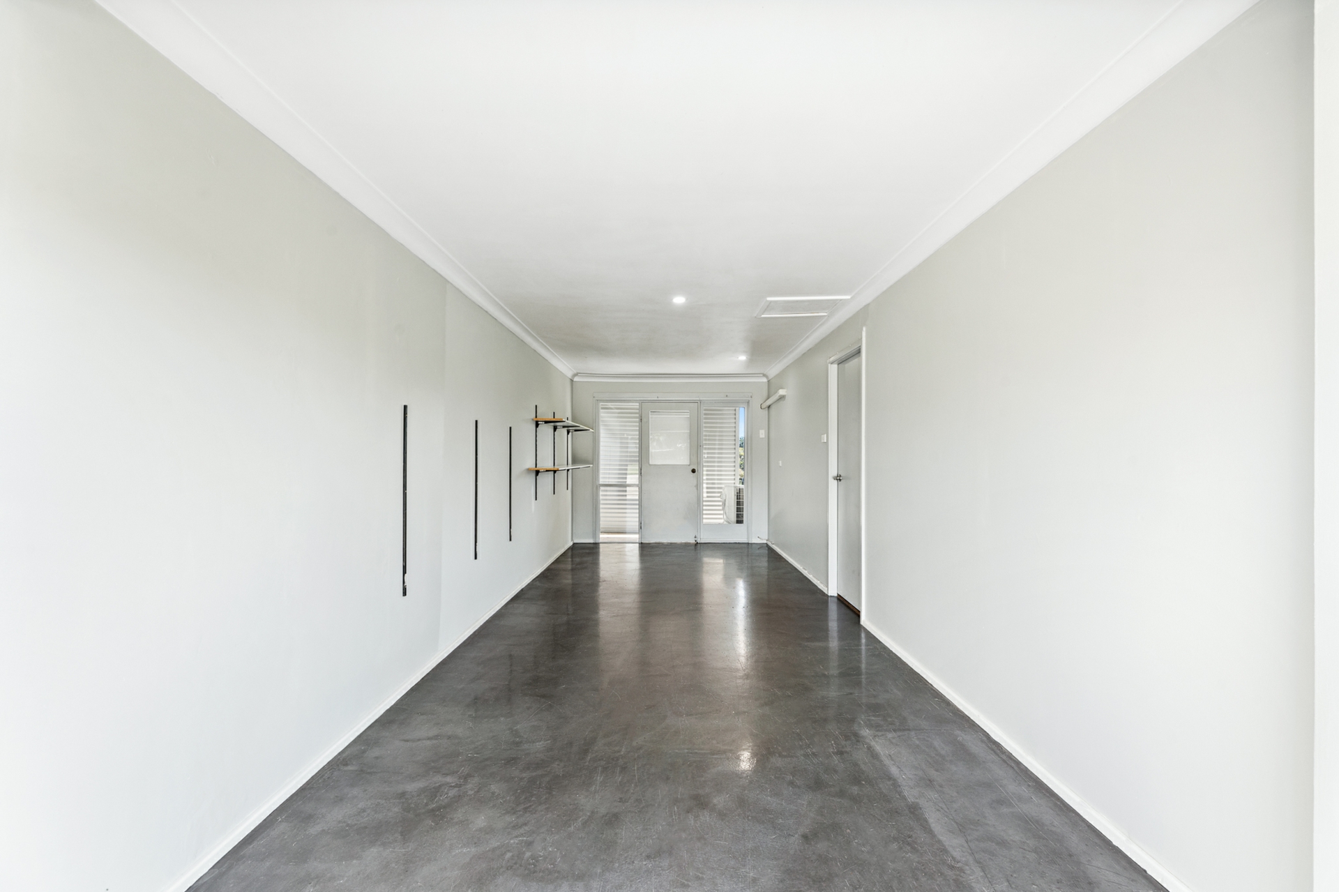 There is a "one and a half" length garage with auto door, which has internal entry to the main living area, as well as rear access to the laundry and back concrete patio.
