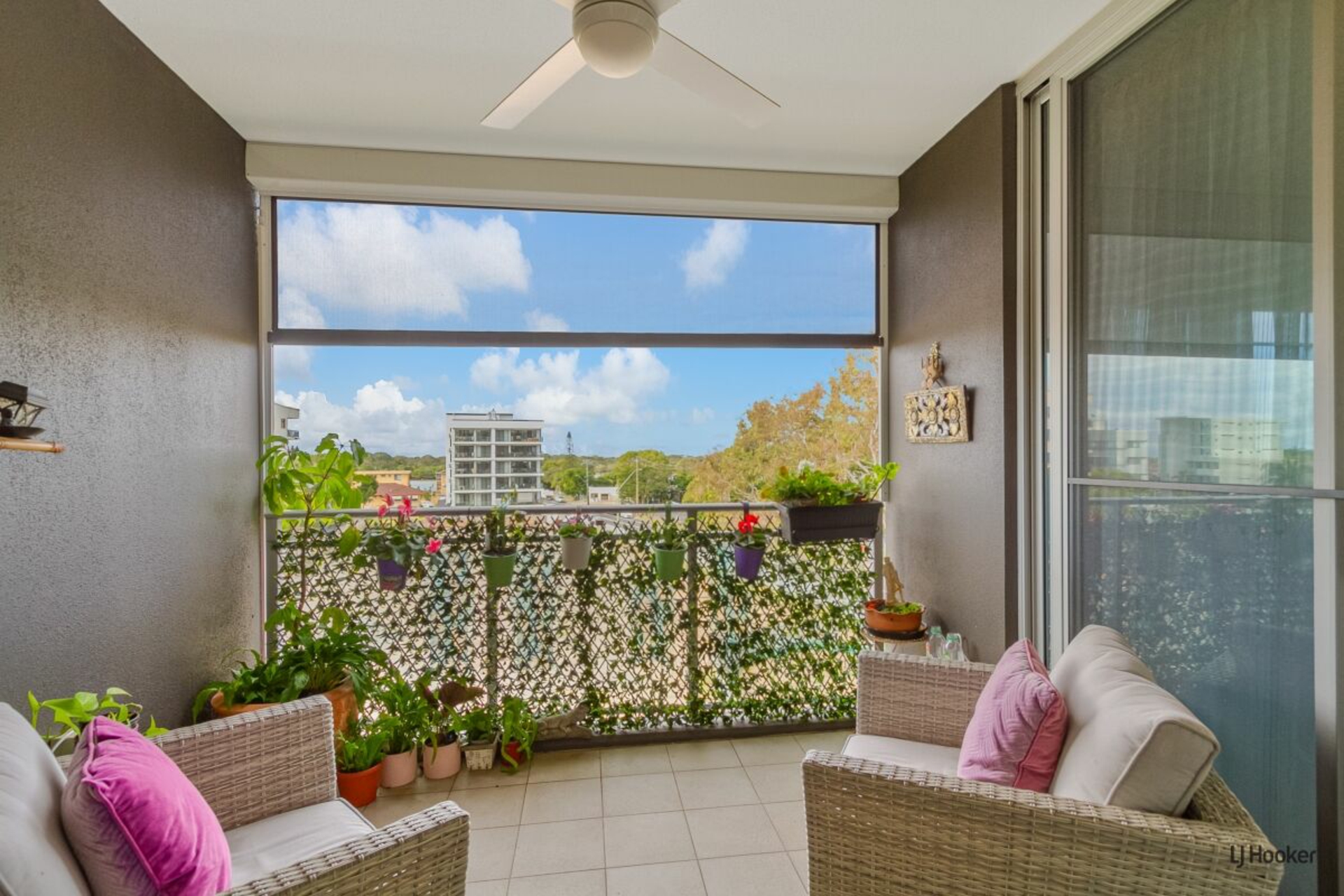 - Balcony equipped with electric outdoor blind for added privacy