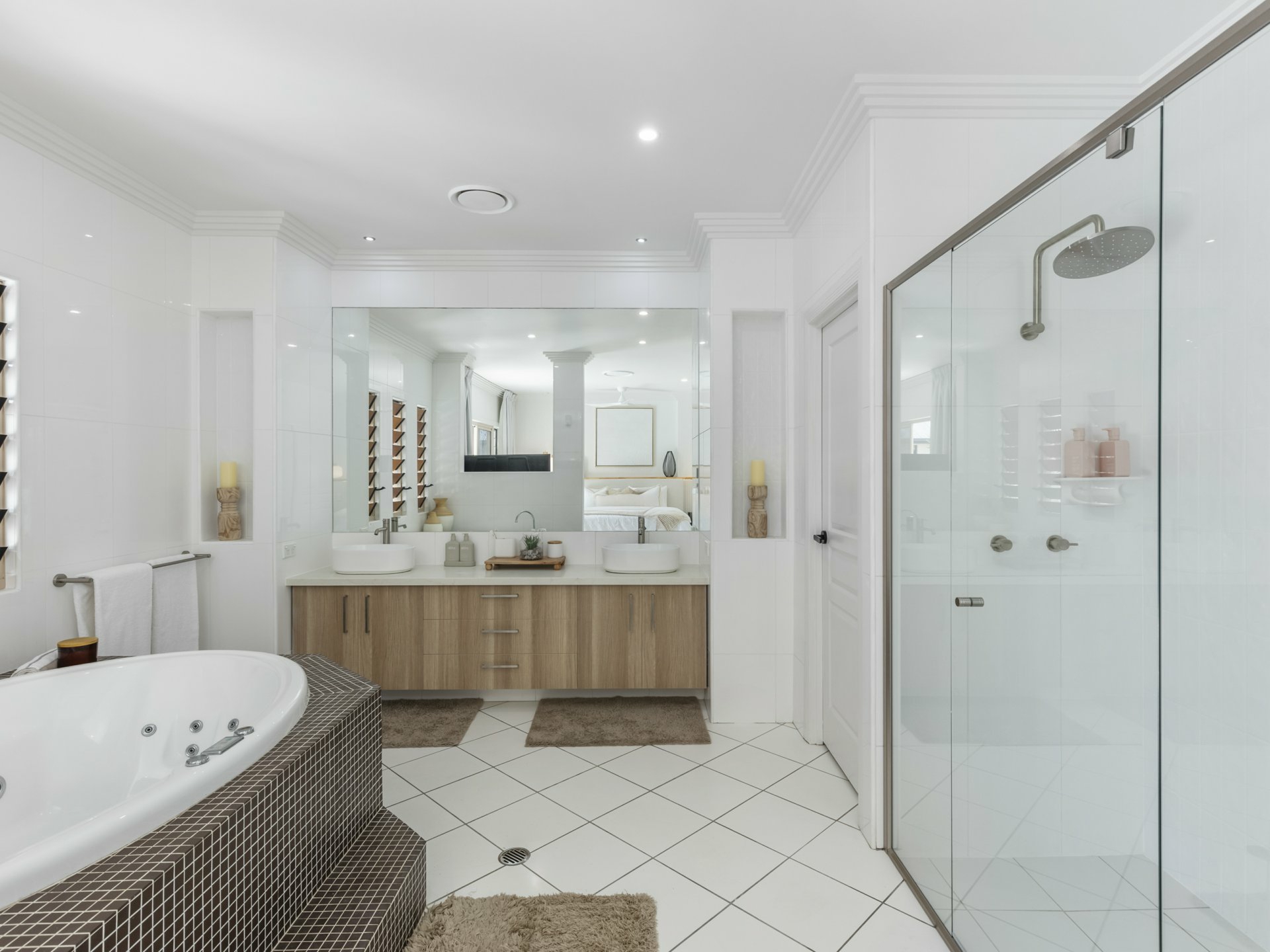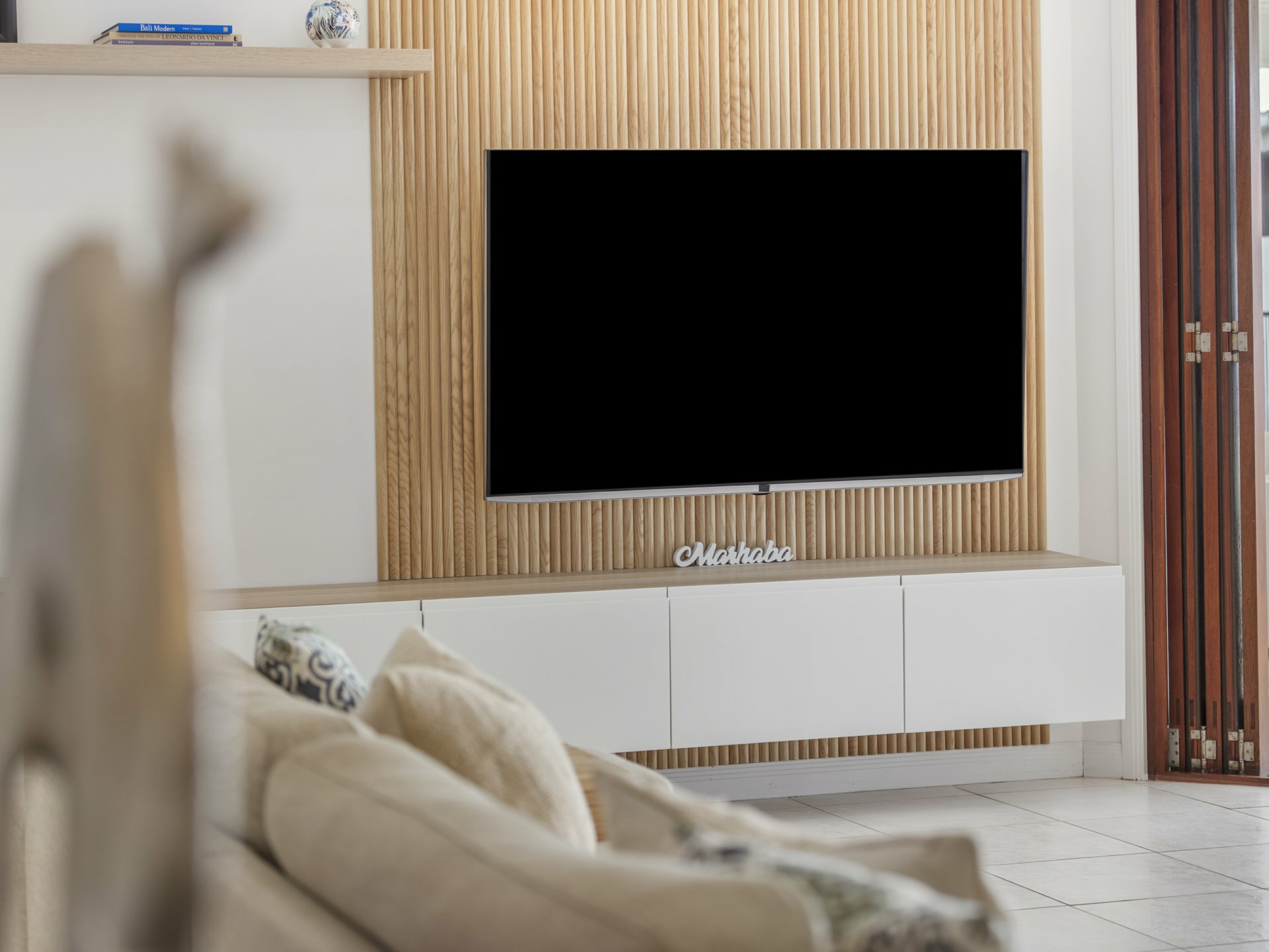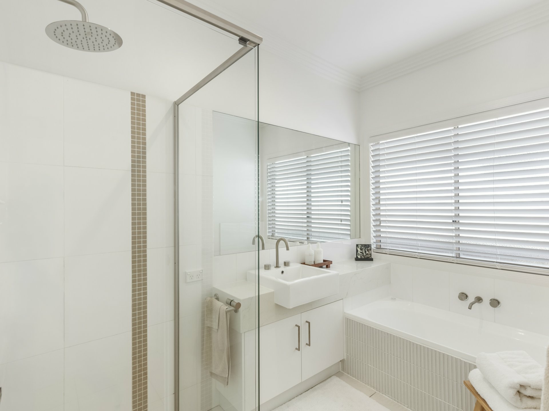- Feature timber panelling and finger mosaic tiles