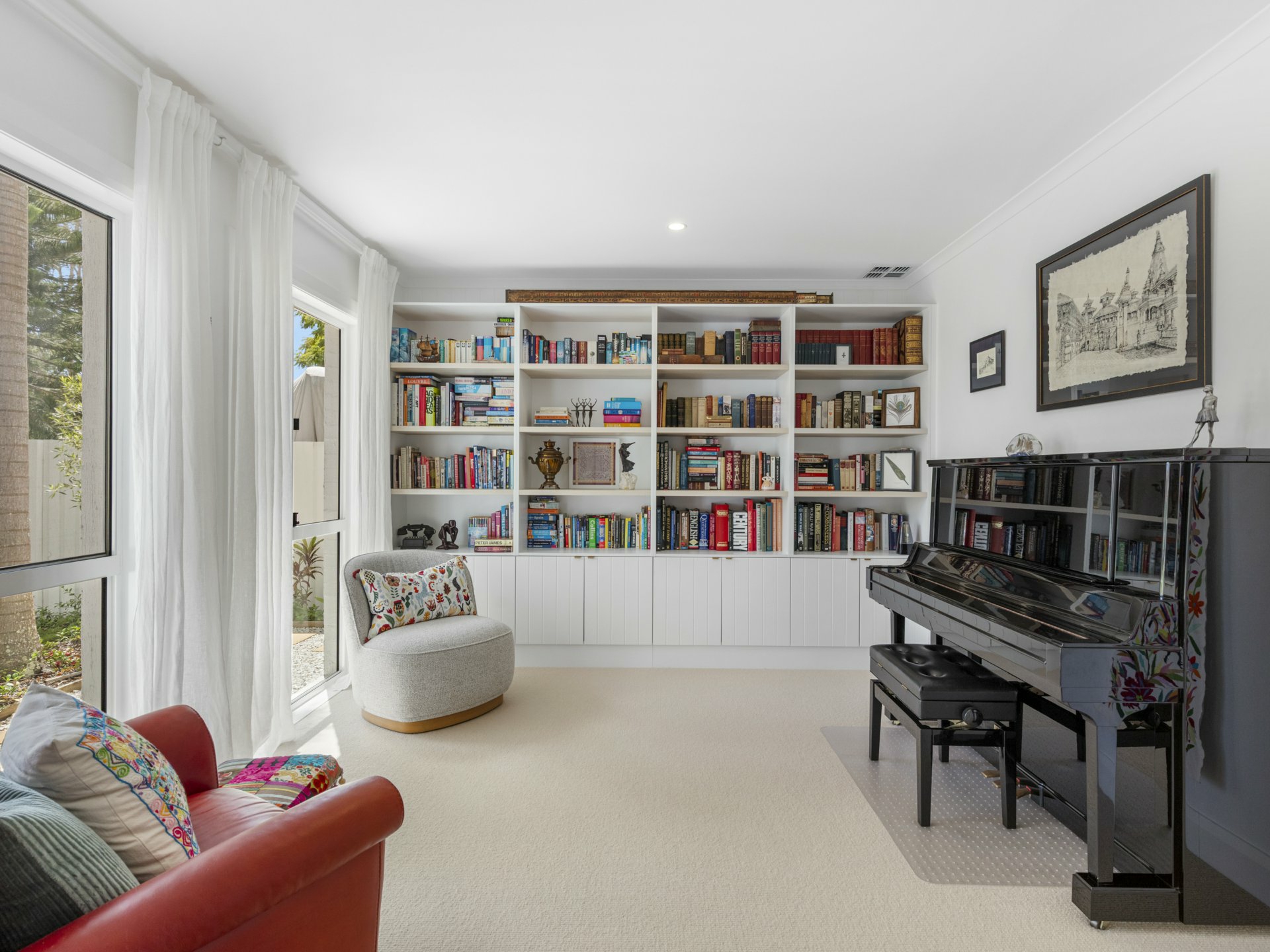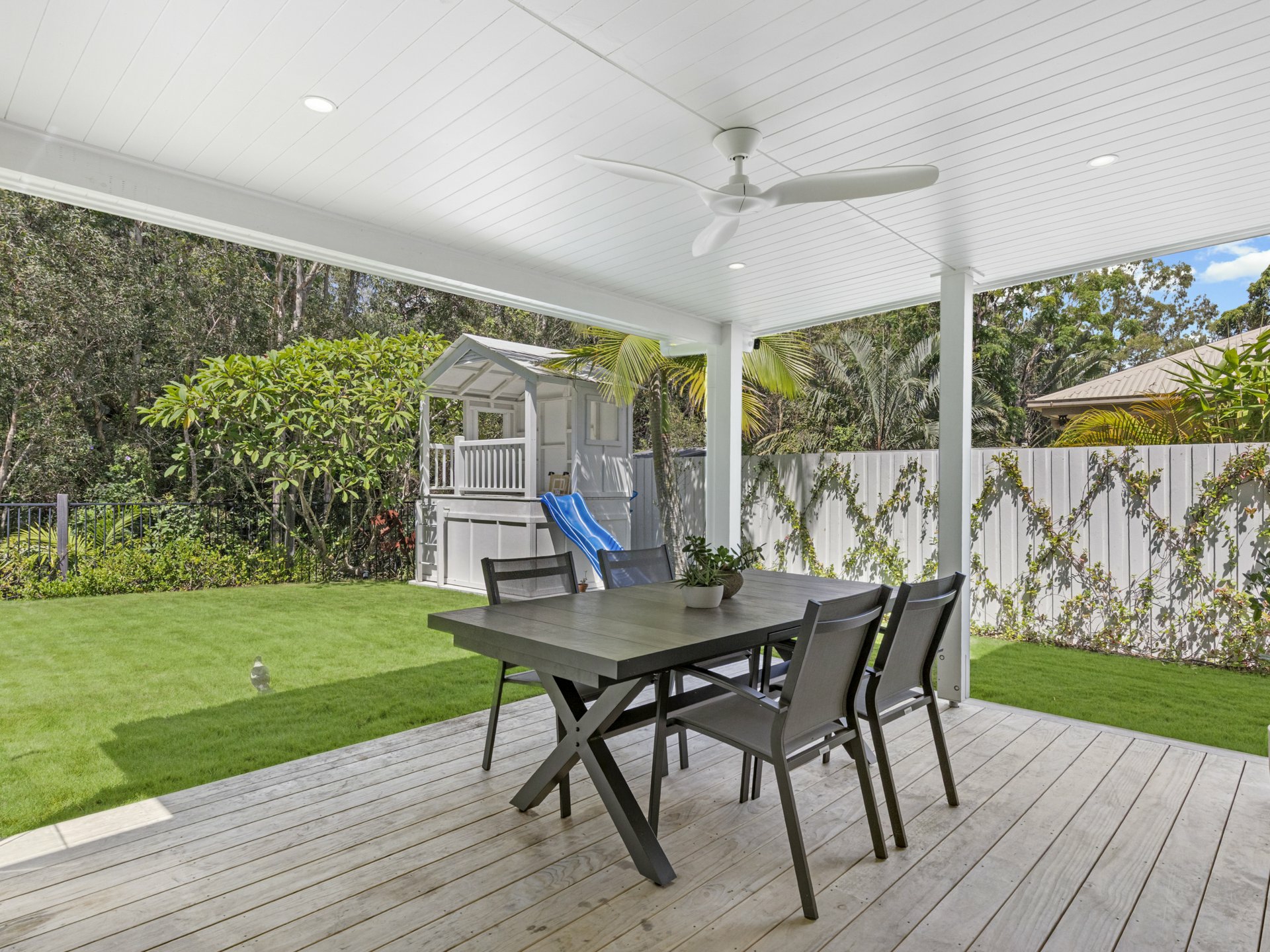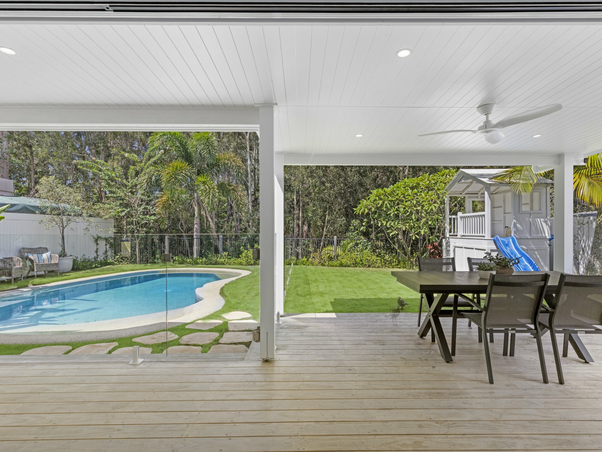 The covered entertainer’s alfresco flows effortlessly to the inground pool, framed by Accoya wood decking and lush Sir Grange Zoysia turf, all maintained by a smart irrigation system. There’s even a charming cubby house that mirrors the home’s designer aesthetic—showcasing the meticulous attention to detail throughout.