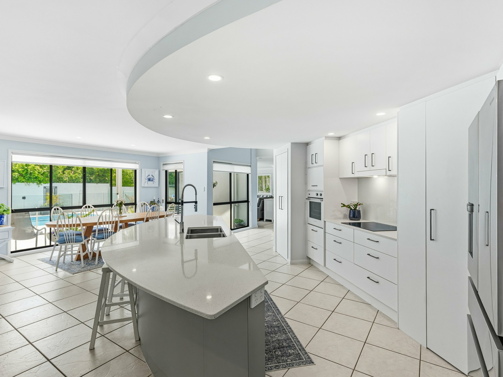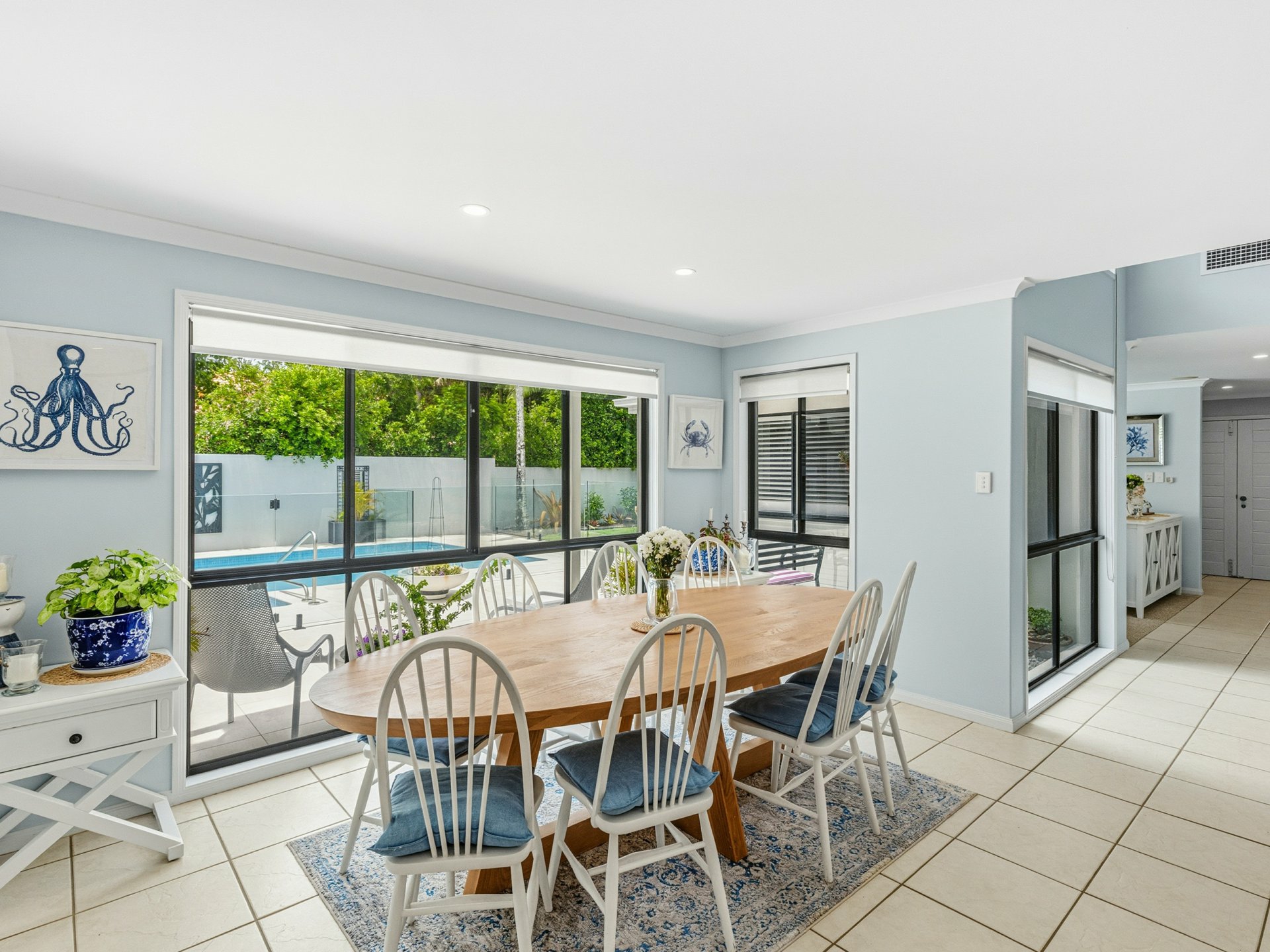 This garden oasis seamlessly compliments the internal open-plan living spaces, creating a beautiful visual connection between indoors and out. An inviting indoor dining area, a second dedicated outdoor dining space, and the poolside pavilion offer multiple options for relaxed meals and entertaining, all framed by tranquil garden and pool views.