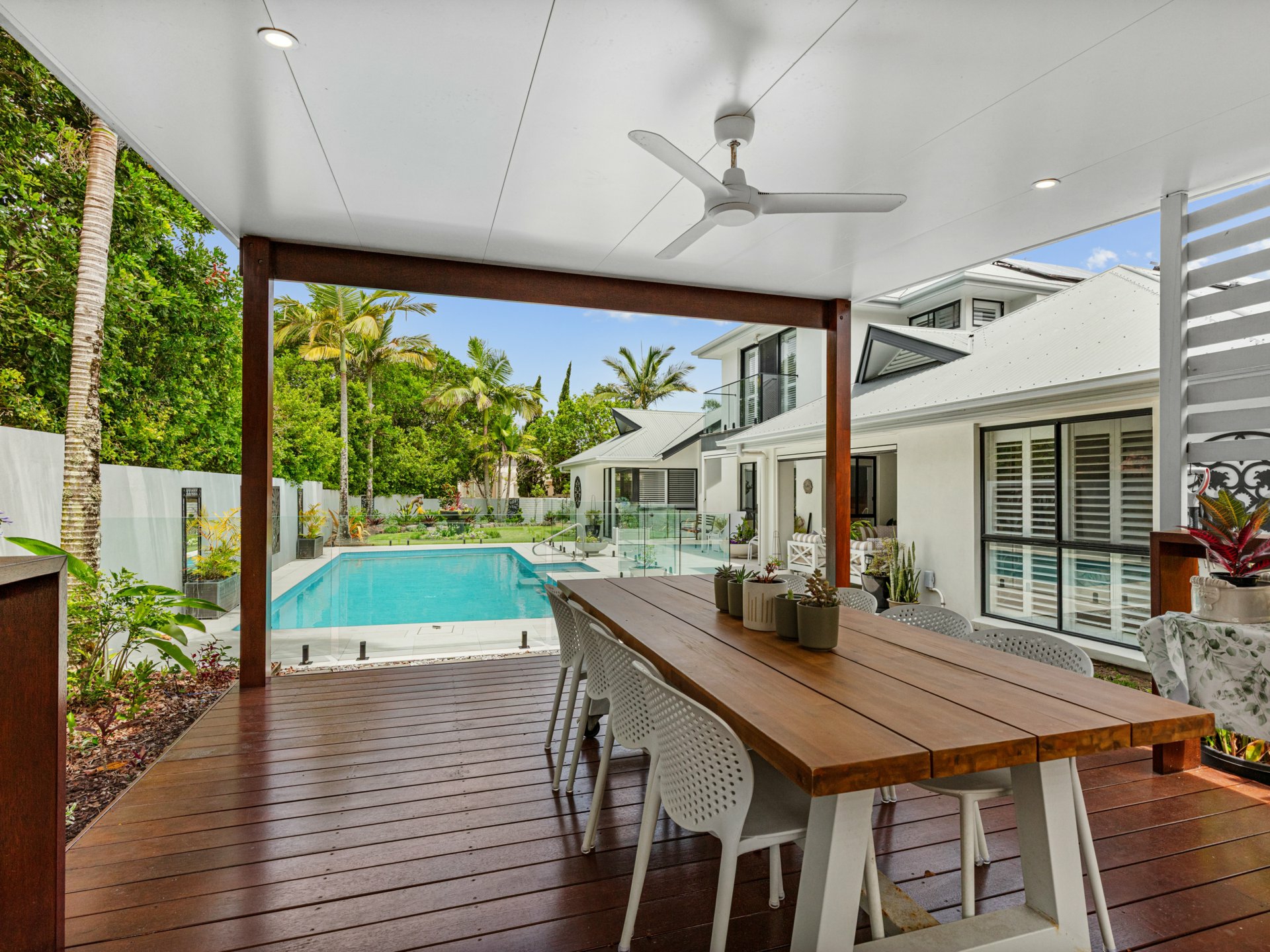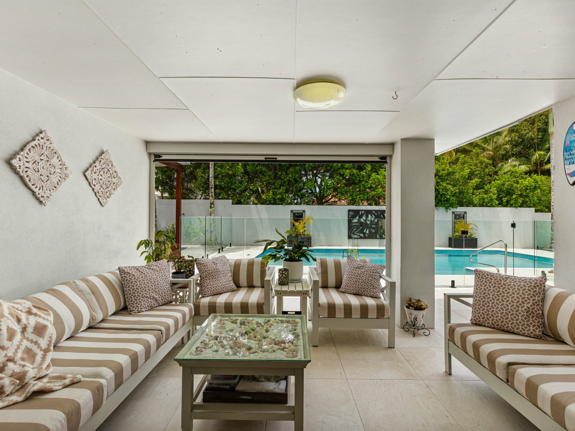 The outdoor sanctuary is where the lush tropical gardens and resort-style living come together in perfect harmony. Running alongside the residence, a stunning, newly resurfaced 10 x 4 metre swimming pool with gorgeous new tiling is flanked by newly landscaped gardens and multiple entertaining zones. To one side, a large and versatile BBQ pavilion provides a setting for hosting family and friends, while the surrounding greenery ensures complete privacy and a true sense of escape.