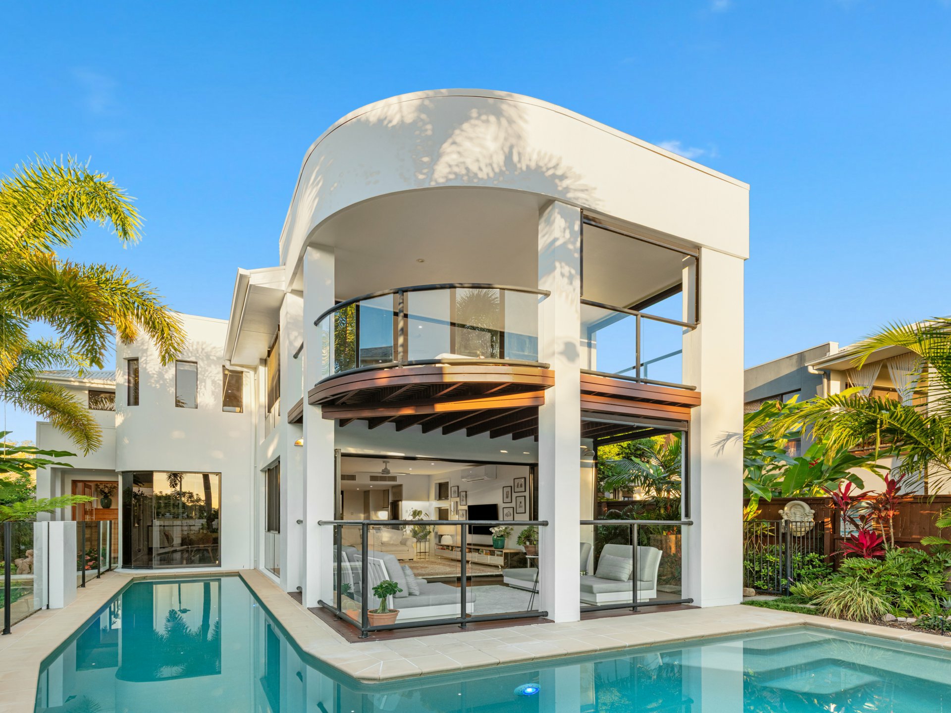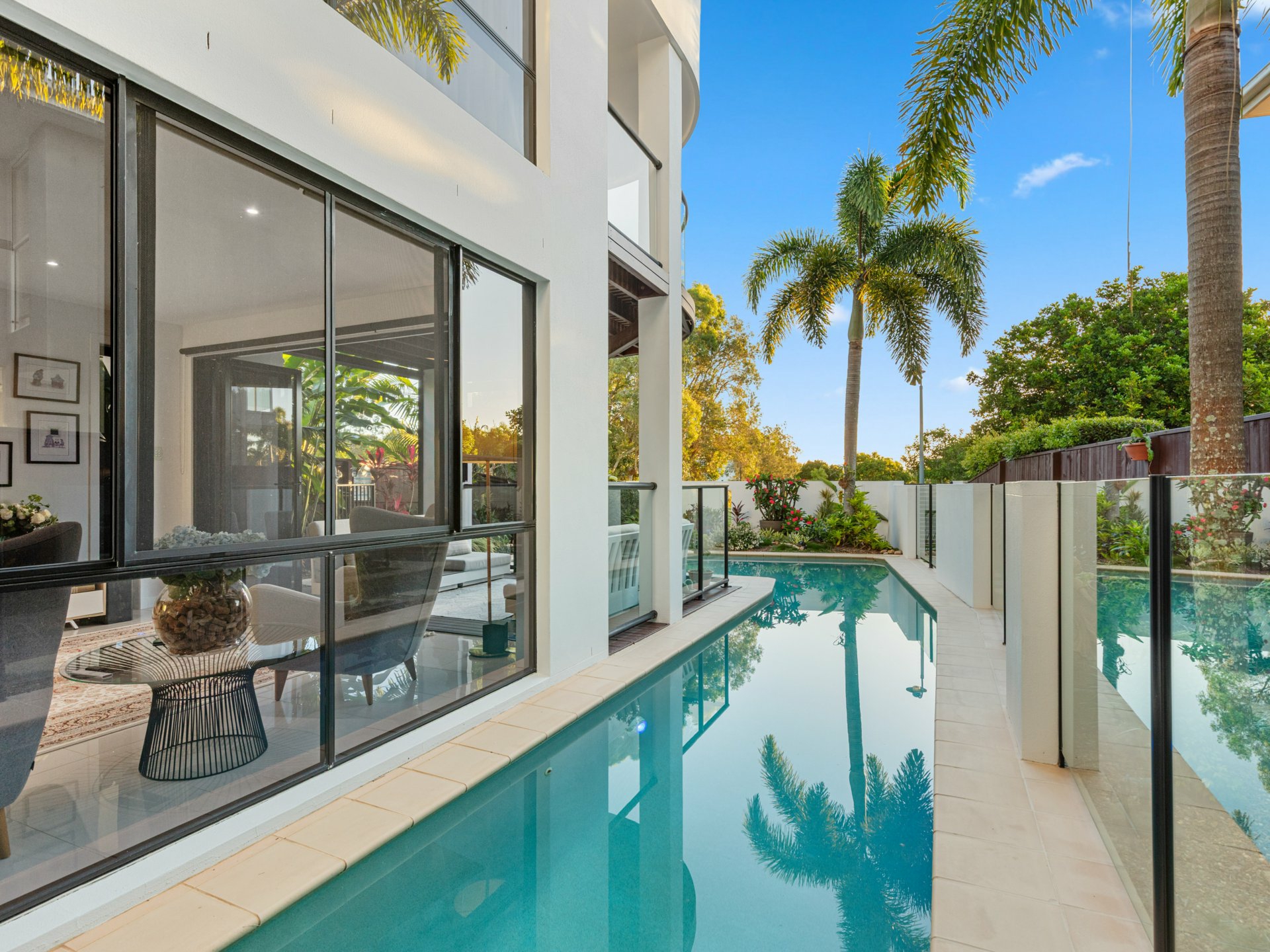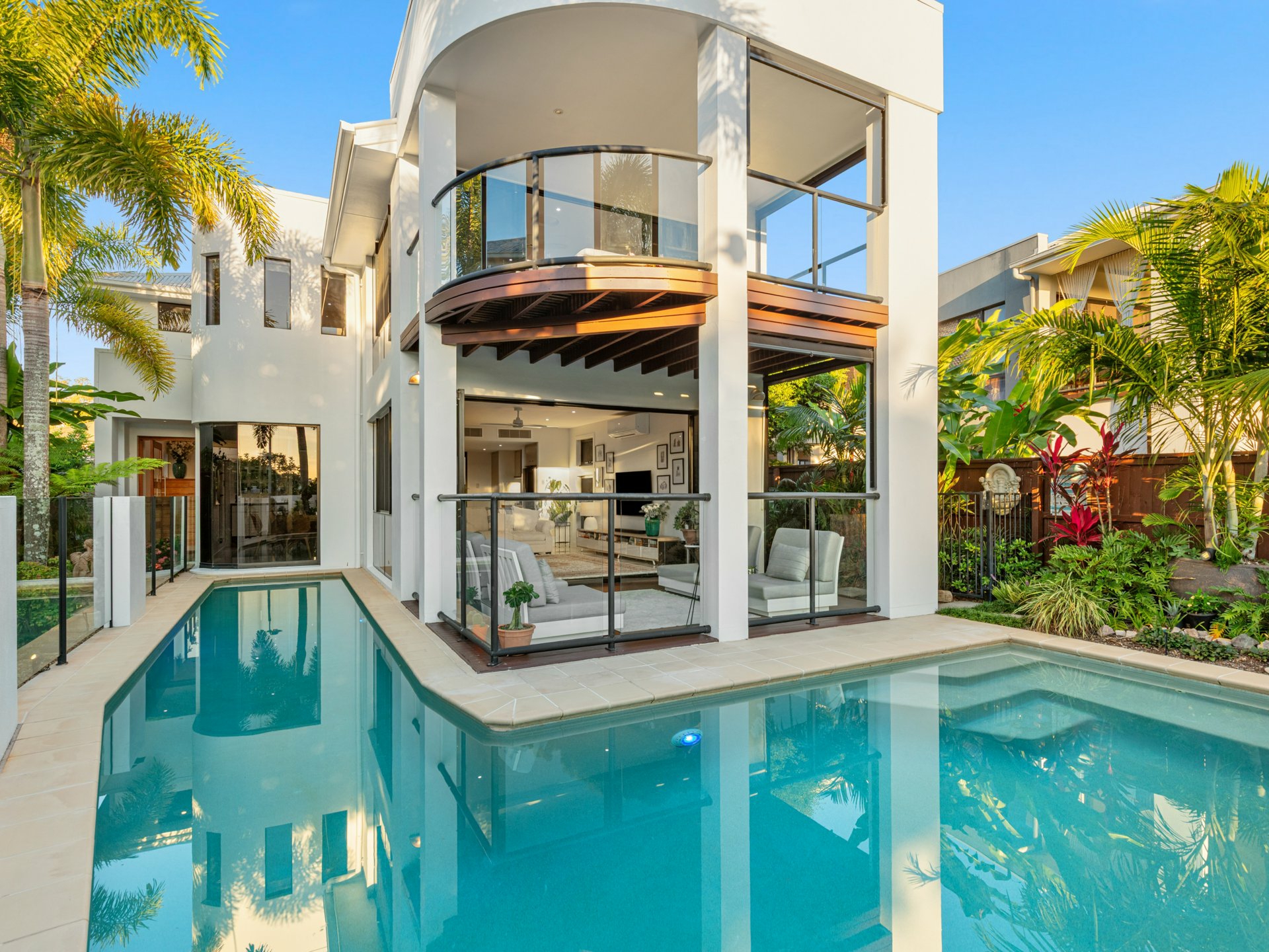 Delivering a sophisticated coastal lifestyle with a focus on design, privacy and effortless luxury, this architecturally considered residence occupies a prized dual frontage position directly opposite parkland and the Twin Waters canal system.
